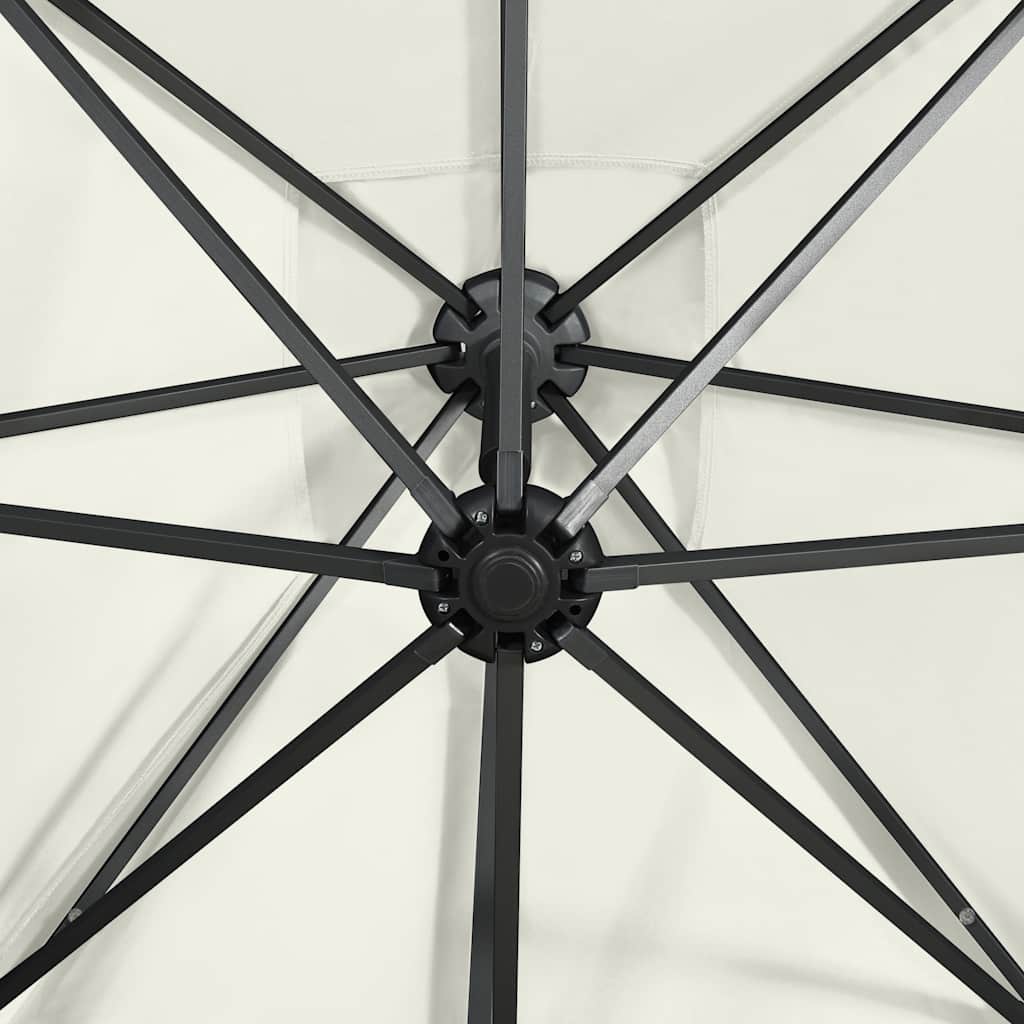 This elegant cantilever garden parasol with LED lights is an excellent choice for creating some shade and protection from the sun's harmful UV rays. When the sun goes down, the LEDs will illuminate your outdoor living space. The parasol cover, made of UV protective and anti-fade polyester, provides you with optimum protection against the sun and is easy to clean. It features a sturdy cross base for added stability. The garden parasol's exclusive design allows you to tilt and rotate it 360 degrees to block the sun from any angle. The strong aluminium pole, along with the 8 ribs, makes the parasol very stable and durable. This garden umbrella can be easily opened and closed thanks to the crank mechanism. Additionally, this patio parasol features 24 LEDs to illuminate your outdoor living space and create a cosy and romantic ambience when the sun goes down. Please note: We recommend treating the umbrella fabric with a waterproofing spray if it is subjected to heavy rainfall.
