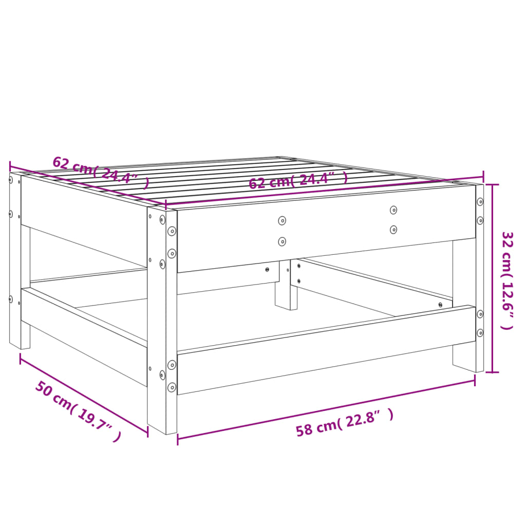 This wooden garden footstool, standing out with the slatted design, will make a great addition to your garden, patio, or terrace for enjoying a cosy time with your family or friends. Impregnated wood: Solid pine wood is a beautiful natural material. Pine wood has a straight grain, and the knots give the material its signature, rustic look. Impregnation is a preservation process that is carried out by using autoclaves. The pressure-treatment increases resistance to decay and weather.Sturdy and stable frame: The wooden frame makes the footstool sturdy and stable for daily outdoor use.Versatile usage: The garden footstool can not only be used to sit or relax your feet, but it can also be used as a coffee table to hold your drinks, food, and other decorations.Modular design: The outdoor footstool is flexible and easy to move around. You can combine it with other modular segments in our shop to create your own personal garden lounge set configurations! Good to know:To make sure your outdoor furniture stays beautiful, we recommend protecting it with a waterproof cover.