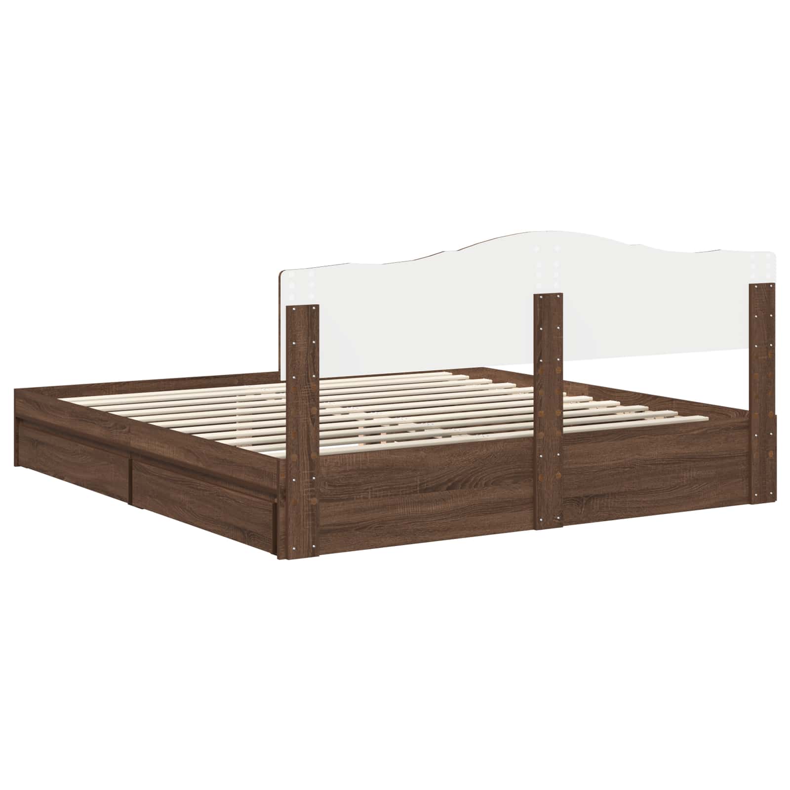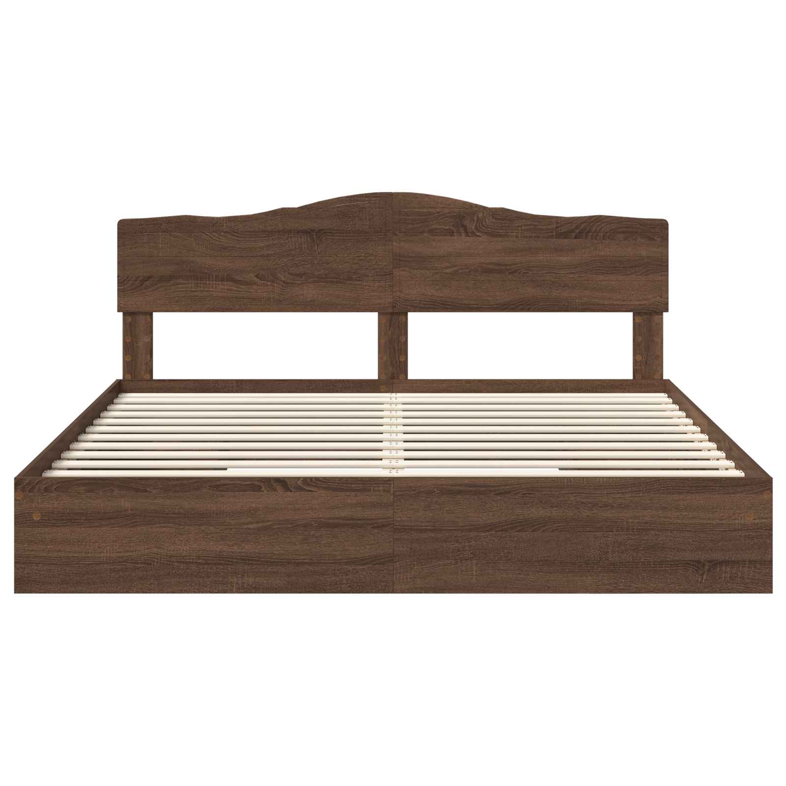 This platform bed frame seamlessly merges functionality with modern design, offering a stylish centerpiece for any bedroom. The rectangular shape paired with clean lines lends the bed a sleek, minimalist appearance, perfect for those who appreciate understated elegance. Designed for indoor use, this bed supports a clutter-free aesthetic while providing practical features for your needs. Its engineered wood construction imbues it with a solid presence, ensuring it remains a stalwart part of your bedroom setup. Engineered Wood Frame crafted with attention to detail, this frame offers durable construction that stands up to daily use. The material is chosen for its strength and reliability, providing a stable structure for rest and relaxation. Platform Slatted Base A solid or closely spaced slatted frame design lends ample support to your mattress, eliminating the need for a box spring and ensuring an even sleep surface. Integrated Storage Drawers conveniently located beneath the bed, allowing for practical storage solutions. The traditional handle design ensures easy access and functionality, seamlessly blending convenience with style. Modern Aesthetic characterized by its sleek, minimalist design, the bed complements contemporary interiors, offering a straightforward yet impactful look to your bedroom. Simple Care &Assembly Easy to maintain with a simple wipeable surface that requires minimal upkeep. Assembly is straightforward, requiring two people and a screwdriver, making setup manageable and efficient.