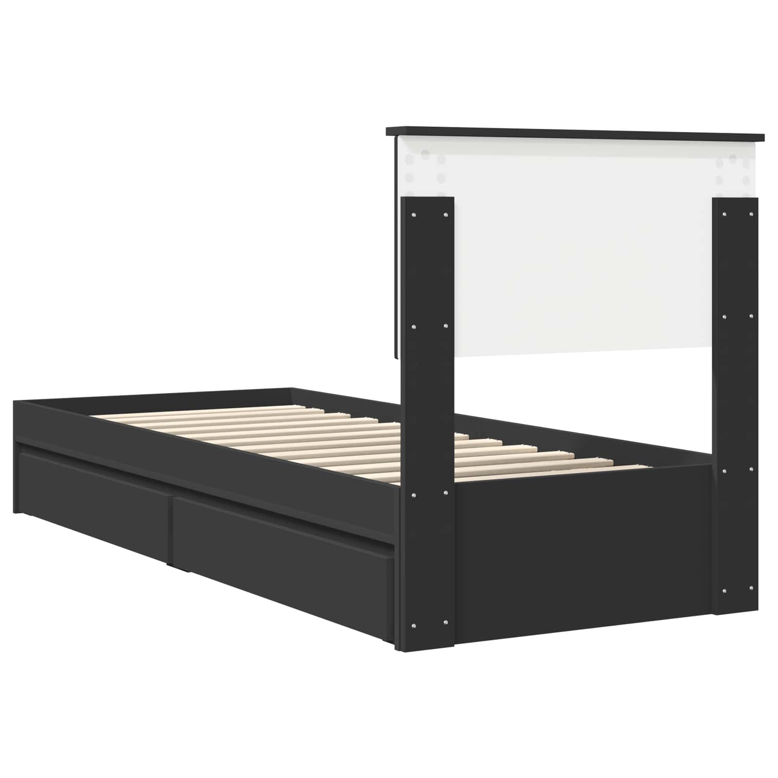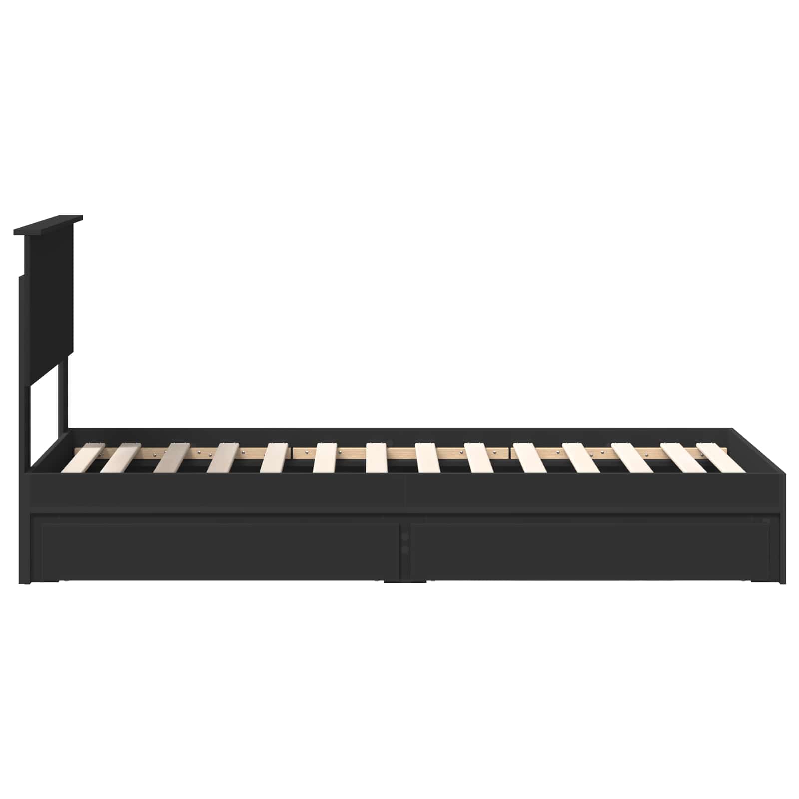 This modern storage bed frame offers an ideal combination of style and practicality designed for modern homes. Featuring an engineered wood construction, it delivers a sophisticated look enhanced by clean lines and a functional design that fits seamlessly into any bedroom. Its understated yet elegant appeal makes it suitable for various décor styles, providing both beauty and practicality. Perfectly designed for family bedrooms, apartments, or compact living spaces, this bed frame effortlessly elevates room aesthetics while optimizing space. Materials: Crafted entirely from engineered wood, this bed frame stands out with its robust construction and smooth surface. Engineered wood is specifically chosen for its ability to withstand the test of time while presenting a sleek and polished appearance. The refined texture of the wood provides a modern edge, coupled with a practicality that handles daily use gracefully. Included Components: Equipped with a fixed slatted frame, the bed ensures ample support and comfort for a restful night's sleep. A headboard crafted from engineered wood adds a touch of elegance, bringing together form and function. The practical drawers offer convenient storage options, meant for easy access without sacrificing space in your room. Features /Function /Design: With its adjustable footboard, you can customize the bed's configuration to suit your preferences. The water-resistant finish makes daily maintenance simple while protecting against accidental spills and common moisture exposure, ensuring longevity. The bed also supports easy manual height adjustments, providing adaptability and comfort. Recommended Uses: Perfect for bedroom spaces that need both aesthetic appeal and storage solutions. Thanks to the built-in drawers, it serves dual purposes; it not only enhances your bedroom's interior but also provides ample storage, making it ideal for urban apartments and family homes. Care &Maintenance: The bed frame requires minimal maintenance thanks to its water-resistant finish. Simply wipe with a damp cloth to keep it clean and pristine. Avoid using abrasive cleaners or harsh chemicals to maintain its surface integrity.