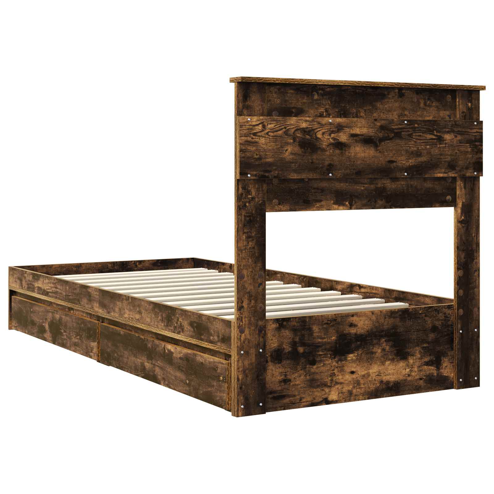 This Modern Storage Bed Frame redefines bedroom utility and style, offering a harmonized blend of practicality and aesthetic appeal. Crafted from engineered wood, its modern design boasts clean lines and simplicity, making it an ideal centerpiece for contemporary homes. It embodies functionality through its ample storage space, allowing you to keep your sanctuary decluttered and organized. With an innate elegance, the bed frame exudes a sophisticated charm, fitting effortlessly into any bedroom decor while promising years of reliable use. Engineered Wood Build This bed frame is constructed from robust engineered wood, chosen for its exceptional durability and sleek appearance. Its sturdy composition ensures long-term use, providing both stability and reliability. The elegant surface finish elevates its modern aesthetic, offering a timeless addition to your bedroom that complements a variety of interior styles. Functional Headboard The included headboard is crafted to match the bed frame's style, bringing cohesive elegance to your sleep space. Made from the same high-quality material, it provides a supportive backdrop for comfort when reading or watching TV. Its adjustable nature offers customizable positioning to suit your preferences, enhancing your relaxation experience. Practical Drawers Integrating practical built-in drawers, this storage bed frame offers ample space for keeping essentials neatly stowed away. The drawers glide smoothly, providing easy access to items like linens, clothing, and personal belongings, enabling you to maintain an organized bedroom environment. Manual Adjustable Footboard Featuring a manually adjustable footboard, this storage bed frame allows you to tailor its height and position as desired. Offering four adjustable levels, the footboard adapts easily to meet your comfort and aesthetic needs, adding flexibility to your sleeping arrangement. Easy Care Simple maintenance ensures this bed frame remains pristine. Regular cleaning with a damp cloth keeps its finish intact, while the water-resistant surface protects it against spills and moisture, prolonging the bed's life and maintaining its allure.