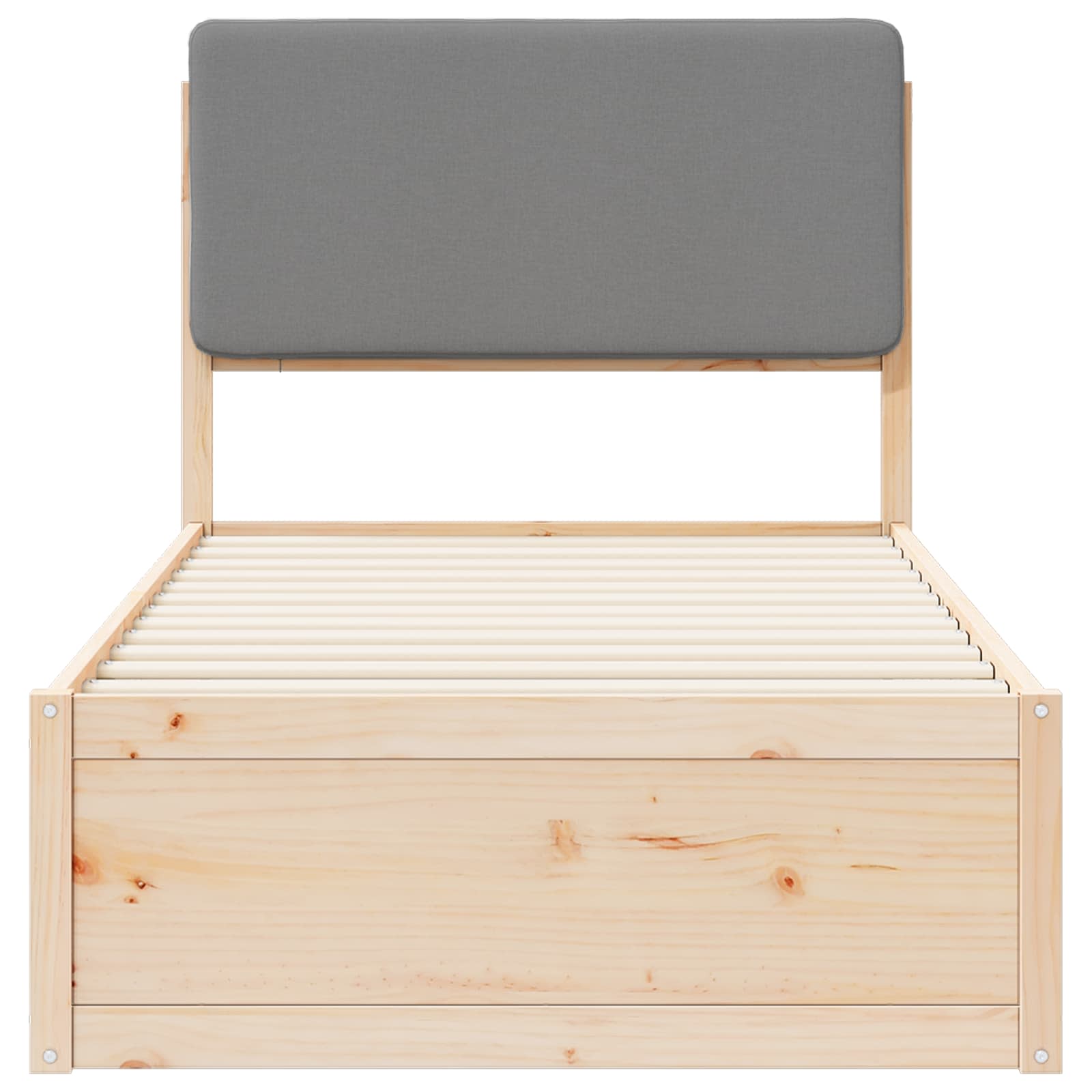 This Wooden Bed Frame with Upholstered Headboard transforms your bedroom into a stylish sanctuary. With its modern design characterized by clean lines and minimal ornamentation, it sits perfectly within contemporary spaces. The bed frame is crafted from Solid Pine wood, providing a sturdy and appealing base that promises longevity amidst regular use. Ideal for minimalistic settings, this piece caters to those who value simplicity, comfort, and style, acting as the central feature in any bedroom arrangement. Premium Solid Pine Wood: Renowned for its robustness, the bed frame's primary construction material offers not only sublime support but also an elegant texture. Solid Pine wood is selected for its sustainability and ability to maintain appearance over time, providing both aesthetic pleasure and practical durability in one neat package. Upholstered Headboard: Adding a touch of softness to the sturdy frame, the headboard brings enhanced comfort. The foam material ensures that bedtime reading or lounging in bed is enjoyable and relaxing. Its removable and washable cushion cover facilitates easy maintenance, making it convenient for upkeep. Functional Platform Slats: Equipped with platform slats that negate the need for a box spring. They form a solid base for your mattress, offering even weight distribution and firm support, elevating user comfort with ease. Simplified Assembly: Requires minimal tools, ensuring that the bed can be set up with ease. With two people needed for assembly, the process is straightforward and quick, making it suitable for a simple weekend project. Maintenance Made Easy: Keeping the frame in prime condition is as simple as wiping it down with a damp cloth. This straightforward care routine helps maintain its pristine look and extends the lifespan, saving time and effort for the user.