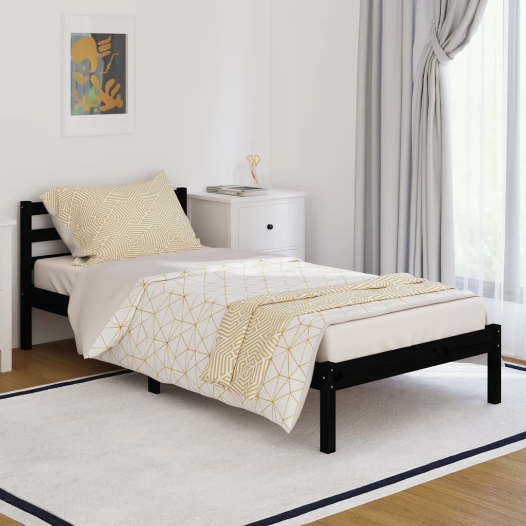 Bed Frame without Mattress Solid Wood Pine 90x200cm Black – Modernique