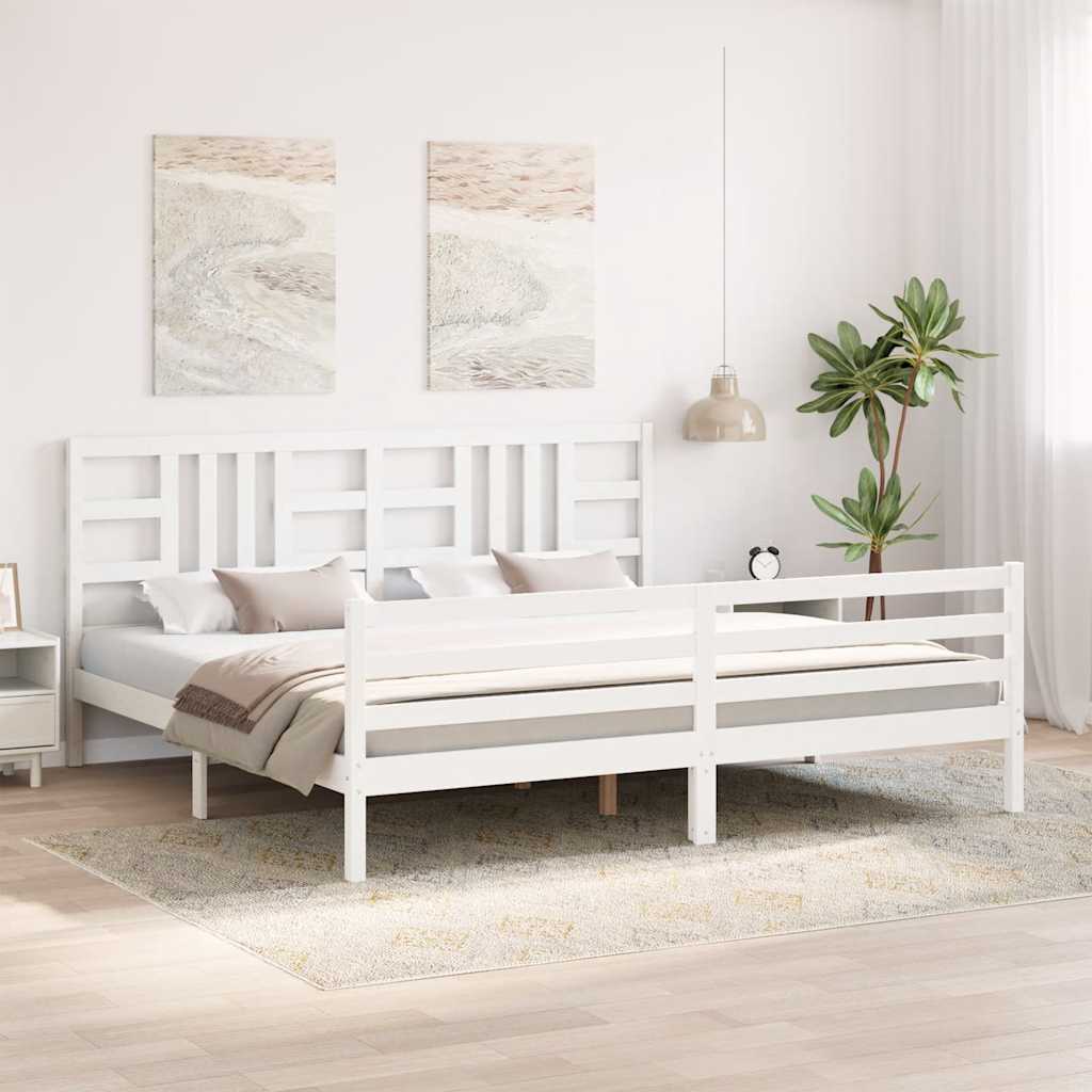 Bed Frame without Mattress White 200x200 cm Solid Wood – Modernique