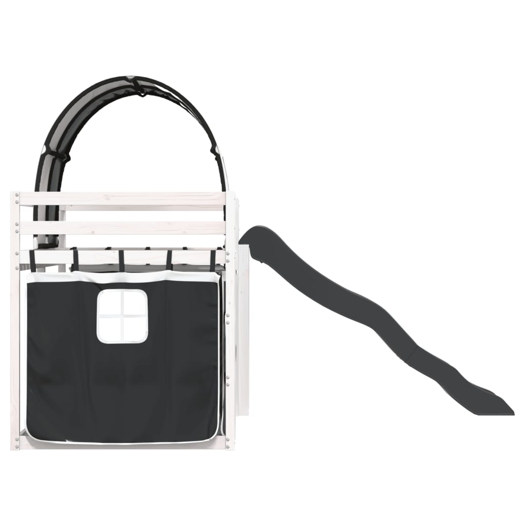 This wooden bunk bed is elegant and functional, making it a perfect addition to any room with limited space. Solid pine wood: This bunk bed is made of solid pine wood for stability and durability. Pine wood has a straight grain, and the knots give the material its signature, rustic look.Great fun: You can combine the curtains with the low bunk bed to create your child's secret base, providing great fun at bedtime and adding a focal point to the bedroom!Safety guardrails: The top bunk comes with safety guardrails on all 4 sides, so your child can sleep without worrying about falling off.Convenient ladder and slide: This double bunk bed has a fun slide that brings joy and turns their room into an indoor playground. The combination of a climbing ladder and slide makes bedtime livelier and more interesting for children.Sturdy slats: The plywood slats provide good weight distribution, ensuring that the mattress stays in place with every twist and turn of your body during sleep. Good to know:A mattress is not included with this bed. We do offer a various selection of mattresses. You can check our shop for a matching mattress. Warning:To prevent it from tipping over, this product must be used with the provided wall attachment device.