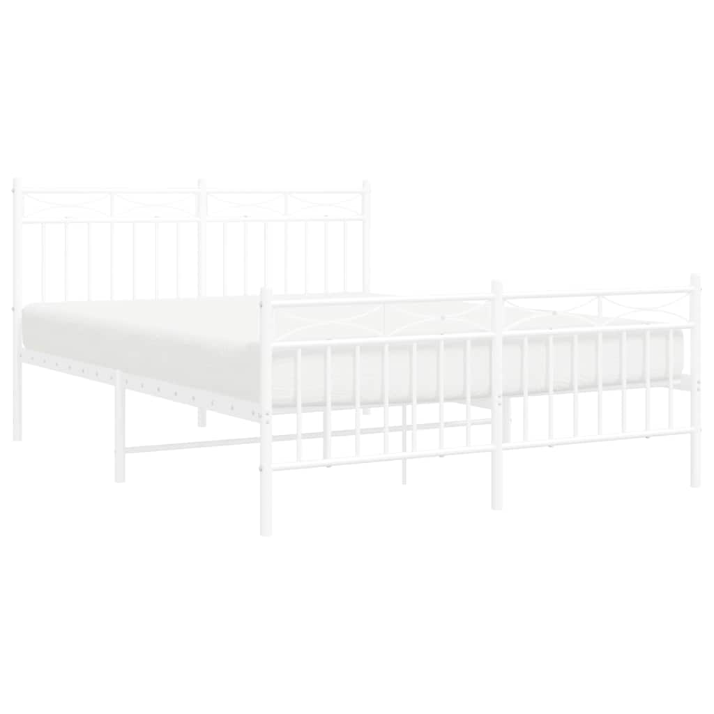 Metal Bed Frame without Mattress with Footboard White 135x190cm – Modernique