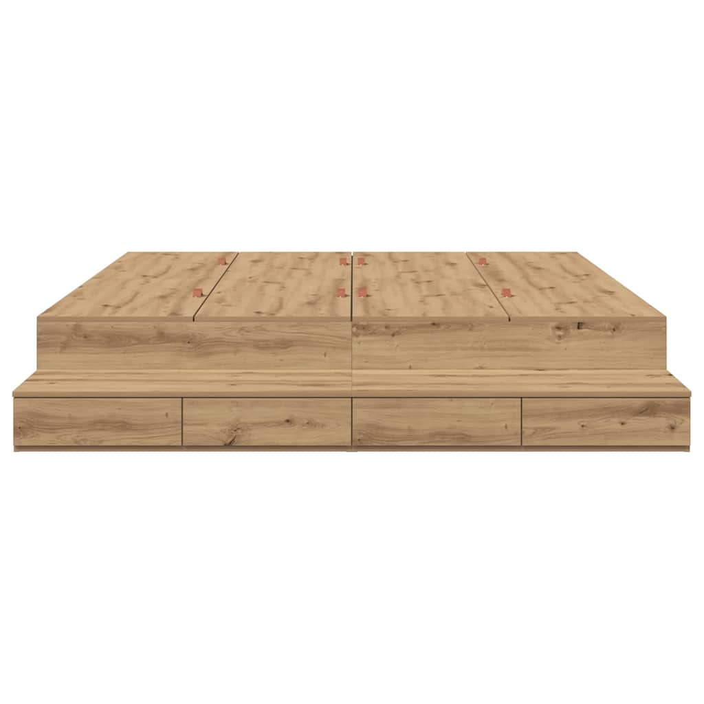 This Modern Storage Bed Frame embodies the perfect blend of style and functionality, tailored for spaces that demand contemporary elegance and practical storage solutions. With its smooth, minimalist design and clean lines, this bed frame serves as a focal point in the bedroom while seamlessly integrating essential storage components, making it ideal for those seeking a tidy and chic living environment. Sophisticated Materials The bed frame is crafted from solid pine wood, complemented by engineered wood panels, offering a robust yet refined structure. These materials promise longevity and an elegant appearance that aligns with modern design aesthetics. Efficient Storage Solutions With integrated panel doors and drawers crafted from engineered wood, this bed maximizes storage without sacrificing style. The leather pulls add a touch of warmth and texture, providing easy access to your stored items. Modern Aesthetic Featuring a contemporary rectangular shape, this bed frame showcases a smooth texture and minimalistic appeal. It's an ideal choice for homeowners looking to enhance their bedroom's design without unnecessary embellishment. Functional Design Designed for indoor use, this platform bed frame eliminates the need for a box spring, showcasing a solid frame that supports the mattress efficiently. Maintenance &Care Keeping the bed frame clean is straightforward. Simply wipe with a damp cloth to maintain its pristine look and prolong its lifespan, ensuring hassle-free upkeep.
