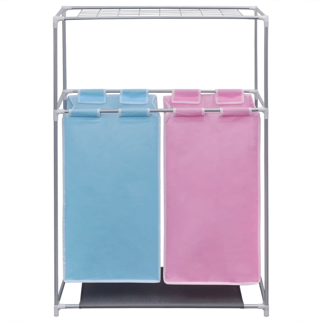 This 2-section laundry sorter hamper will help you to organise your laundry more effectively, and also saves you the hassle of sifting through the smalls. This handy laundry sorter features two colour-coded compartments to keep your lights and darks separated and sorted prior to washing, which will make doing the laundry a lot easier. Each laundry bag is removable and washable thanks to the high-quality fabric. The durable iron frame is lightweight yet sturdy. This convenient piece also has a spacious upper shelf for extra storage or drying and a fabric bottom layer to keep damp or dirt away. Delivery includes 2 hampers.