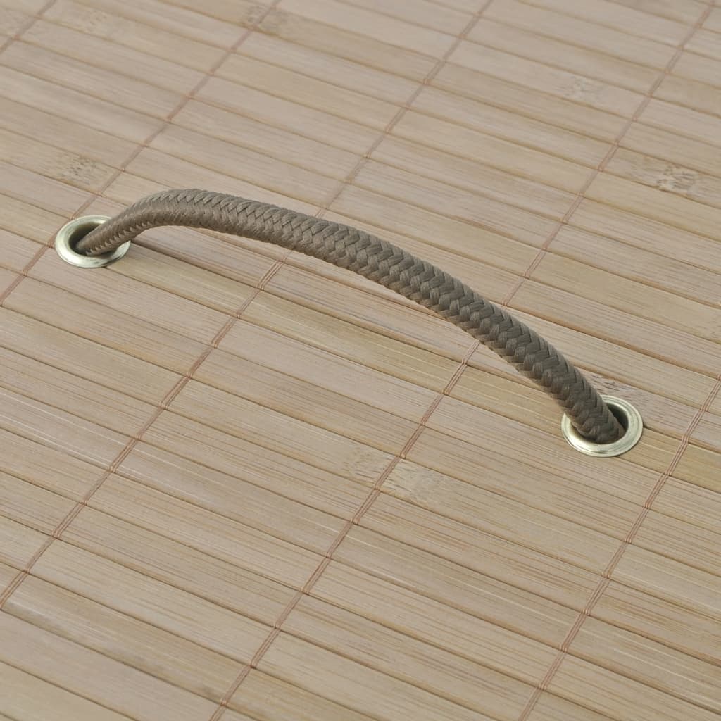 Our bamboo laundry bin is an ideal solution for any household. It keeps your dirty laundry out of sight and makes a decorative addition to your decor at the same time. The inside liner is made of a woven polyester fabric, which does not absorb moisture or odours. It is also removable so you can conveniently transport your laundry to the machine. The basket is equipped with handles so it can be easily moved around. This bamboo laundry hamper can be dismantled and folded up when not in use. This multifunctional hamper can also be used for storing children’s toys.