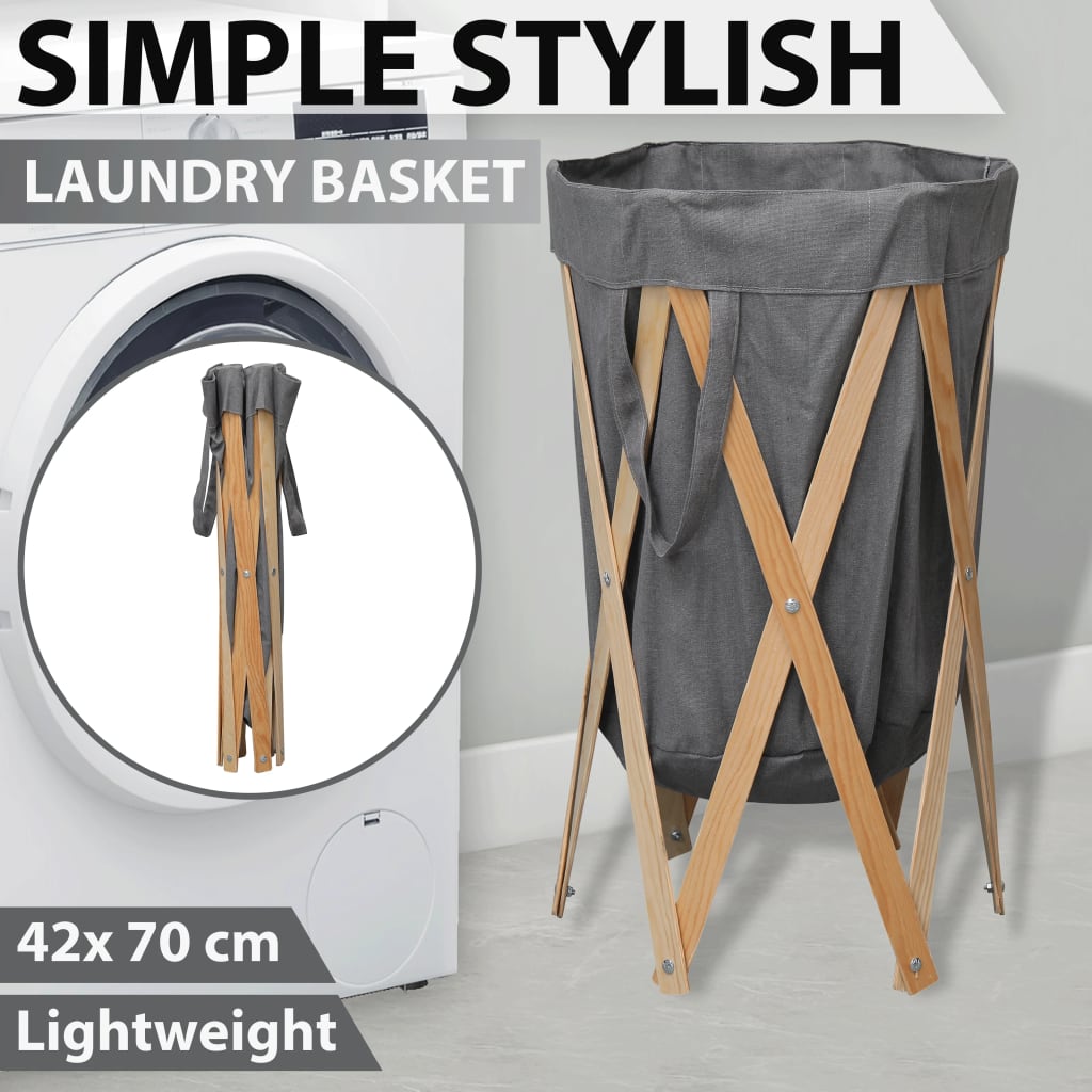 Folding Laundry Basket Grey Wood and Fabric – Modernique