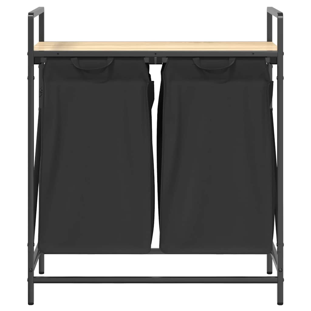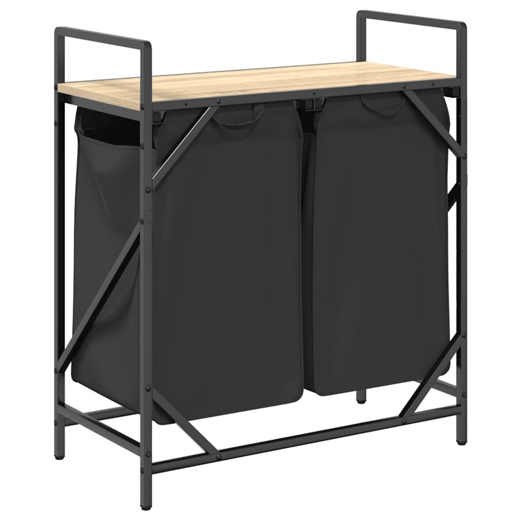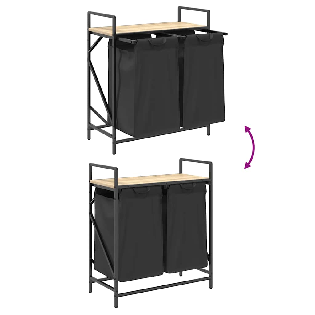 The laundry basket provides a spacious and convenient storage solution, with pull-out bags that make organising your laundry effortless. Laundry sorter: Designed to offer a generous load of laundry per bag, this organiser helps categorise garments by colour or fabric type, maintaining a clutter-free laundry area, and also storing toys and more.Convenient pull-out laundry bags: The removable laundry bags are designed with pull-out handles and hook-and-loop fasteners for easy detachment and pulling. The reinforced bottom panels help maintain the bags' shape and prevent sagging.Robust and durable structure: This laundry basket combines a steel frame with durable engineered wood, offering excellent strength, wear resistance, and stability.Top storage surface: The laundry basket features a top shelf, offering a practical solution for keeping your essentials within easy reach. Perfect for storing toiletries, laundry detergents, fabric softeners, or even decorative items.Versatile and multifunctional: Perfect for the laundry room, bathroom, or bedroom, this unit seamlessly blends functionality with style, keeping your home tidy and organised while complementing various décor themes. Warning:To prevent it from tipping over, this product must be used with the provided wall attachment device.