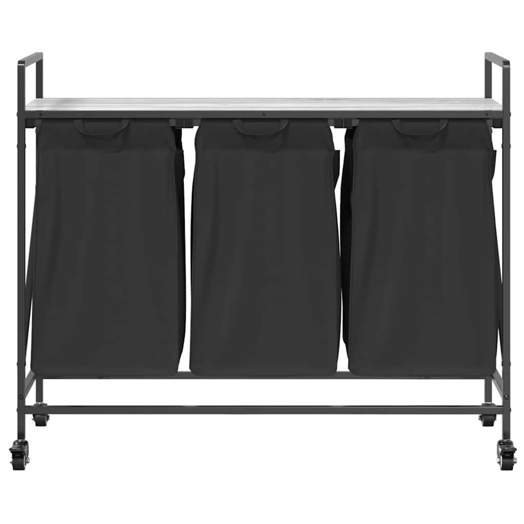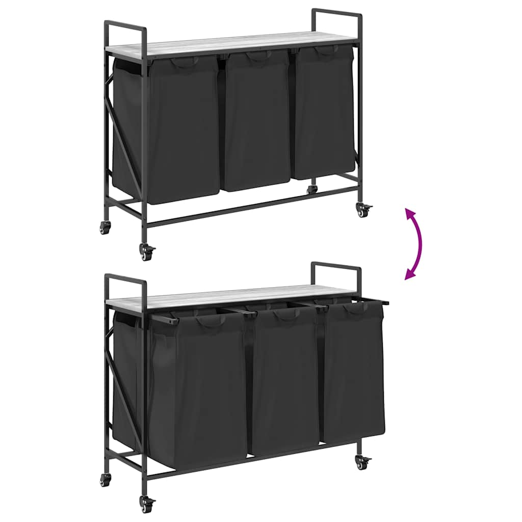 The laundry basket provides a spacious and convenient storage solution, featuring pull-out bags and wheels that make organising and transporting your laundry effortless. Laundry sorter: Designed to offer a generous load of laundry per bag, this organiser helps categorise garments by colour or fabric type, maintaining a clutter-free laundry area, and also storing toys and more.Convenient pull-out laundry bags: The removable laundry bags are designed with pull-out handles and hook-and-loop fasteners for easy detachment and pulling. The reinforced bottom panels help maintain the bags' shape and prevent sagging.Robust and durable structure: This laundry basket combines a steel frame with durable engineered wood, offering excellent strength, wear resistance, and stability.Top storage surface: The laundry basket features a top shelf, offering a practical solution for keeping your essentials within easy reach. Perfect for storing toiletries, laundry detergents, fabric softeners, or even decorative items.Effortless mobility: Featuring durable wheels for easy movement, this laundry basket allows you to smoothly roll it from room to room. Two of the wheels are equipped with brakes, ensuring that once you've placed the basket where you need it, it stays securely in place without rolling away.