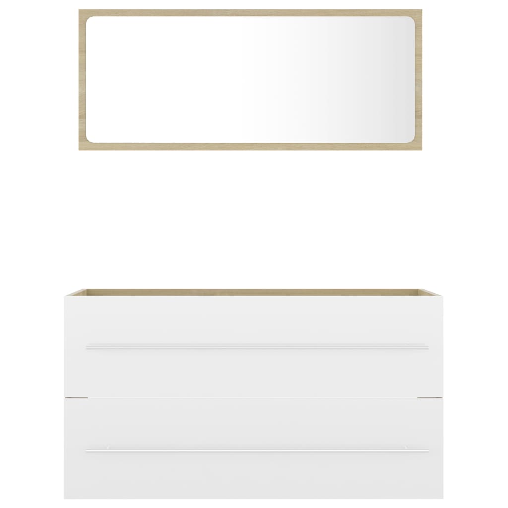 With this stylish bathroom furniture set, you can create additional storage space for your bathroom with a striking, tidy appearance. The clean lines and sleek design blend into your bathroom perfectly. The furniture set, featuring a mirror and a cabinet, is made of durable and stable engineered wood. This chic cabinet features 1 drawer, offering ample storage space to store items in your bathroom. The top of the cabinet is ideal for placing the sink. The mirror also adds an excellent appearance to your home decor. Additionally, this bathroom set is easy to clean with a damp cloth. Please note: The sink is not included in the delivery; the top handle of the cabinet is only for hanging a towel and not the handle for a drawer.