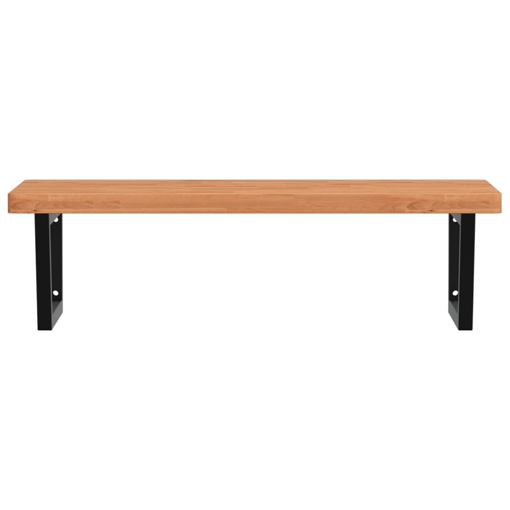 The wall mounted basin shelf securely attaches to the wall, providing an elegant and space-saving solution for your bathroom. Sturdy and long-lasting: This basin shelf is combined with a steel structure and a solid beech wood top, making it sturdy, stable, and long-lasting. Space-saving: The floating basin shelf has ample space to store creams and small items. Thanks to the trapezium shape, you can hang towels or other things on the support to save space. Easy to use: The countertop comes undrilled to allow the basin to be mounted on the left, right, or in the centre, depending on your room's requirements. Thanks to the pre-drilled holes in the holder, it can be easily assembled with the tabletop and mounted on the wall. Wide applications: Thanks to its modern design, it provides additional space for various types of bathrooms. Good to know:Screws are not included, you can purchase the screws separately based on the information provided below. Wall attachment: 2 pcs M8 expansion screws per bracket Wooden top: 2 pcs M5x18 screws (T=2) or 2 pcs M5x20 screws (T=2,5/4cm) per bracket