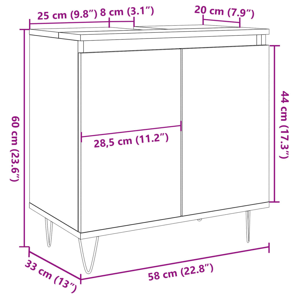 This bathroom cabinet is meant to be a great addition to your bathroom, giving it a tidy and striking appearance!Durable material: The engineered wood is of exceptional quality with smooth surface and also features strength, stability, and resistance to moisture.Ample storage space: The bathroom furniture has 1 large compartment with 2 doors, offering various storage space to store items in your bathroom.Iron feet: The iron feet add an industrial style to your interior while ensuring the stability of the bathroom storage cabinet.Warning:To prevent it from tipping over, this product must be used with the wall attachment device (not provided).