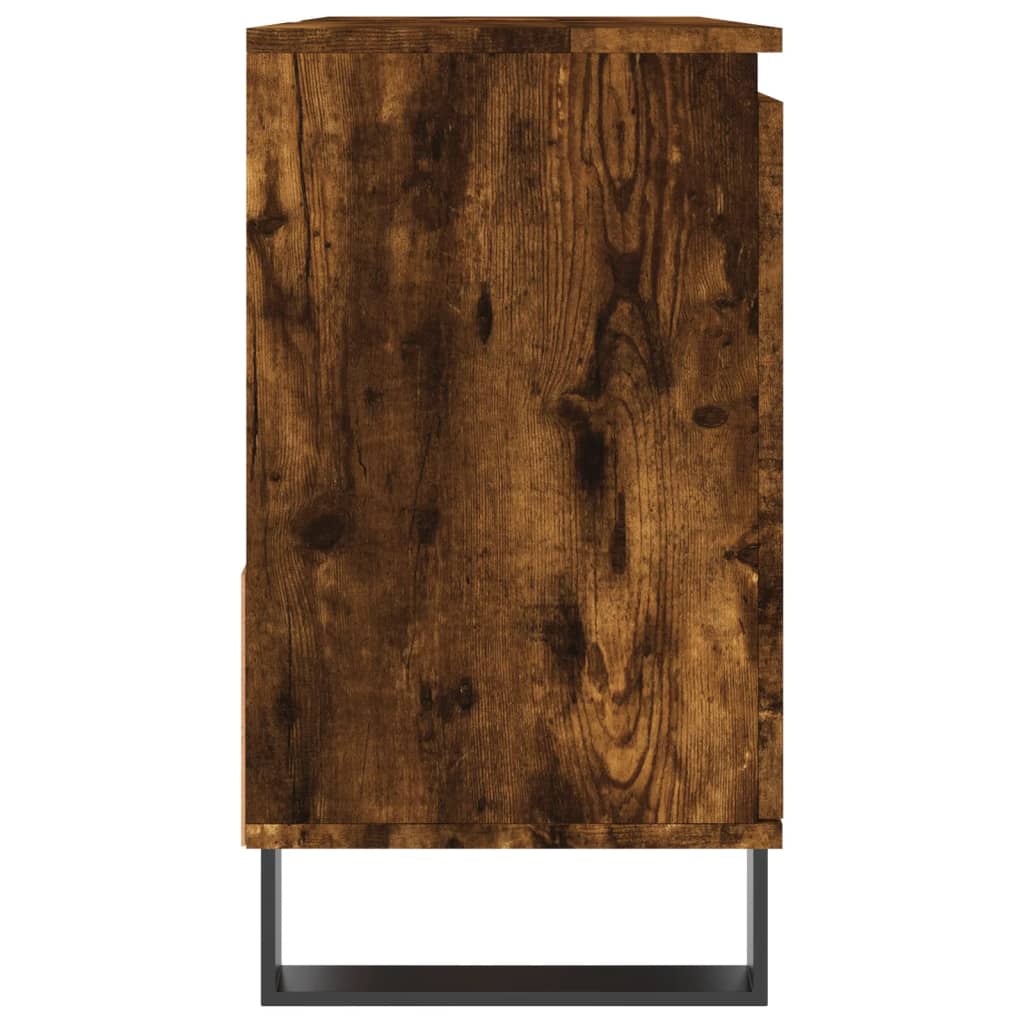 This bathroom cabinet is meant to be a great addition to your bathroom, giving it a tidy and striking appearance! Durable material: The engineered wood is of exceptional quality with smooth surface and also features strength, stability, and resistance to moisture.Ample storage space: The bathroom furniture has 1 compartment with door and 2 drawers, offering various storage options and extra space to store items in your bathroom.Flexible door installation: You can install the door and drawers either on the left or right side based on your own needs.Iron feet: The iron feet add an industrial style to your interior while ensuring the stability of the bathroom storage cabinet. Warning:To prevent it being overturned, this product must be used with the provided wall attachment device.