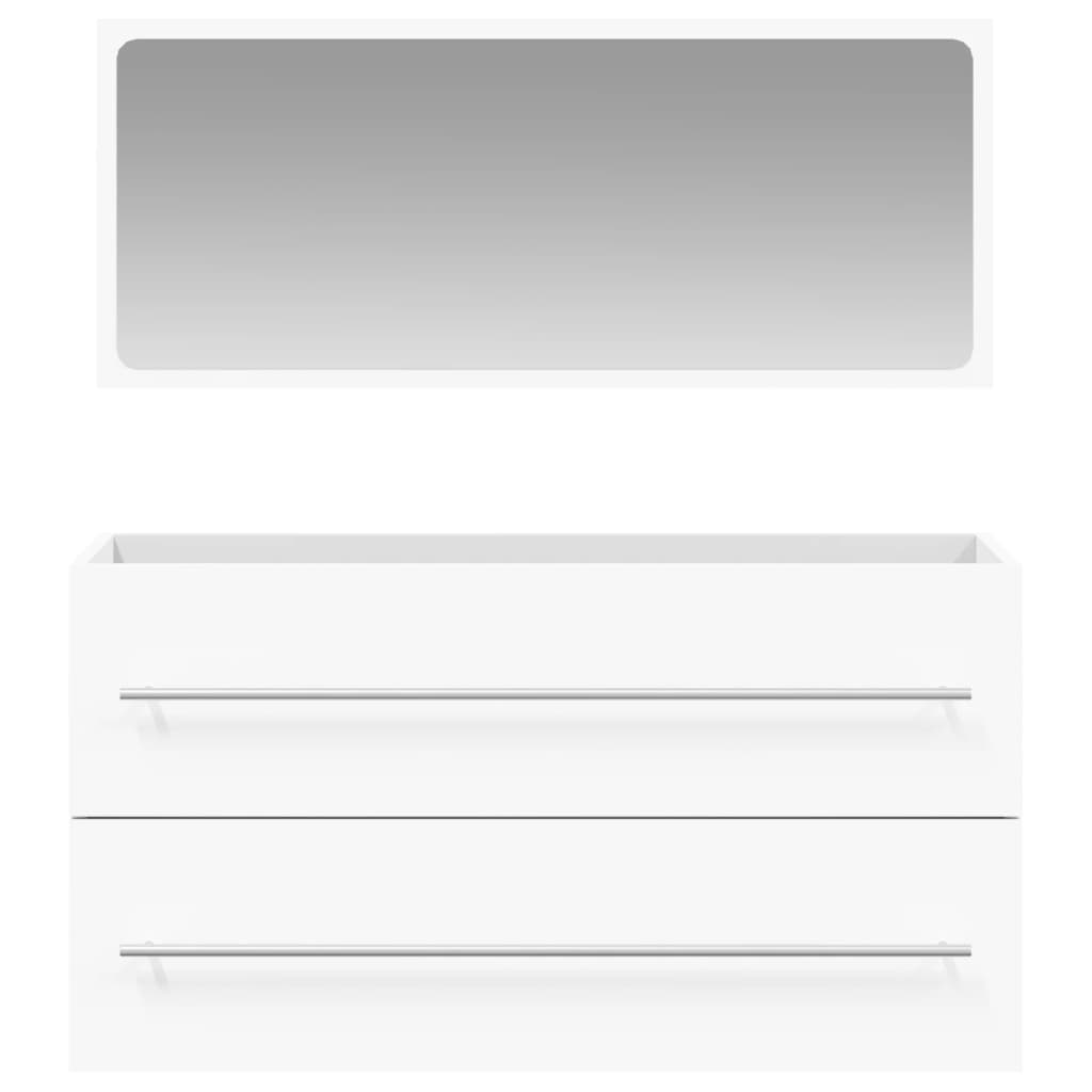 This stylish bathroom cabinet with mirror is an excellent addition to your bathroom, giving it a tidy and striking appearance! Durable material: The engineered wood is of exceptional quality with smooth surface and also features strength, stability and resistance to moisture. Made of engineered wood, this bathroom storage cabinet is sturdy and durable. Ample storage space: The bathroom furniture offers ample storage space for keeping your bathroom supplies well organised. Wall-mounted function: The bathroom cupboard and the mirror can be wall-mounted for extra storage space. That way, you can maximise your floor space and keep the area clean.Minimalistic mirror: The minimalistic mirror provides the view for makeup application and adds a stylish touch to the bathroom vanity unit.Practical design: The top of this bathroom wall cabinet is ideal for placing the sink. Good to know:Screws and plugs for inside the wall are not included. We advise to find and use screws and plugs suitable specifically for your walls. If you're not sure, you can consult with a professional. Please read and follow each step of the instructions.