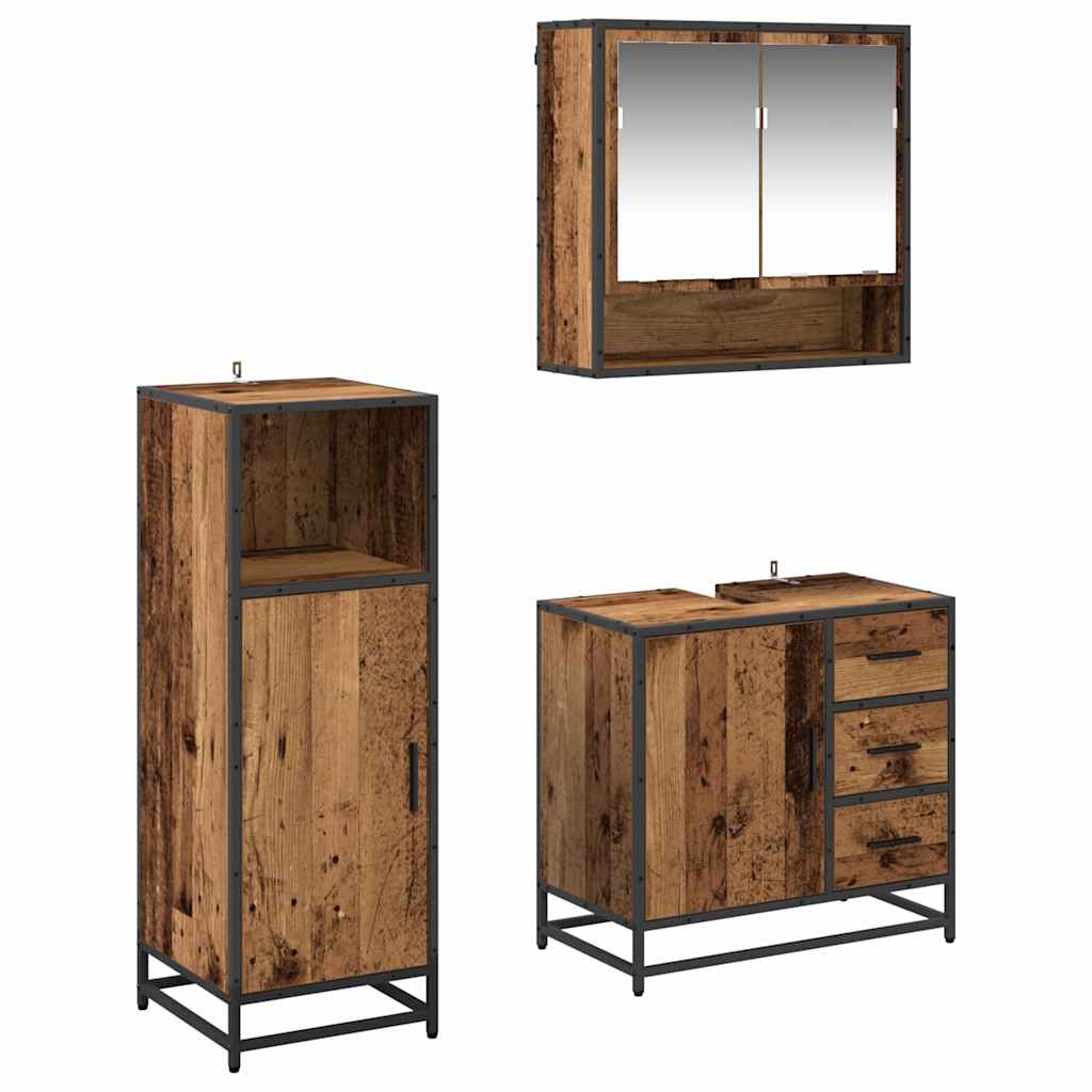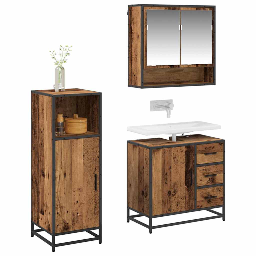 This stylish bathroom furniture set elegantly combines functionality and modern aesthetics, designed to elevate your bathroom's interior. With a sleek rectangular shape and a contemporary style, it becomes a centerpiece in any bathroom setup, offering elegance, organization, and efficient use of space for all ages. Its clean finish and minimalist vibe ensure it blends seamlessly with various decors, while the black metal legs provide a touch of sophistication and stability. Engineered Wood Construction Designed using high-quality engineered wood, ensuring a reliable, sturdy structure that offers long-lasting use. The material's smooth finish enhances the visual appeal while providing a durable surface that stands up well against common bathroom challenges like moisture and humidity. Board Shelves The integrated board shelves offer flexible storage solutions, giving you ample room to arrange towels, toiletries, and other essentials. These shelves help keep your bathroom organized and clutter-free while maintaining quick access to all necessary items. Flush Doors The flush doors in this set present a sleek surface that complements the minimalist design ethos, enclosing storage chambers securely and elegantly. This feature offers a combined aesthetic and practical function by protecting contents and maintaining a streamlined appearance. Wall-Mounted Installation Crafted for wall-mounted installation, this set saves valuable floor space, making it ideal for small or narrow bathrooms. Its mounting type doesn’t compromise stability and provides a clean, organized look by keeping bathroom essentials off the ground. Simple Care Instructions Maintaining the set's pristine condition is straightforward. Simply wipe with a damp cloth to clean, avoiding any harsh chemicals, to keep surfaces looking new and polished. This ensures long-lasting appeal and hygiene in your bathroom.
