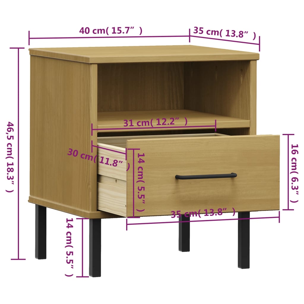 Bedside Cabinet with Metal Legs Brown Solid Wood Pine OSLO – Modernique