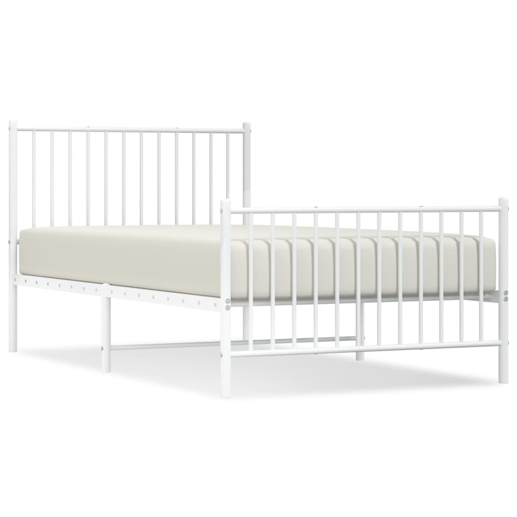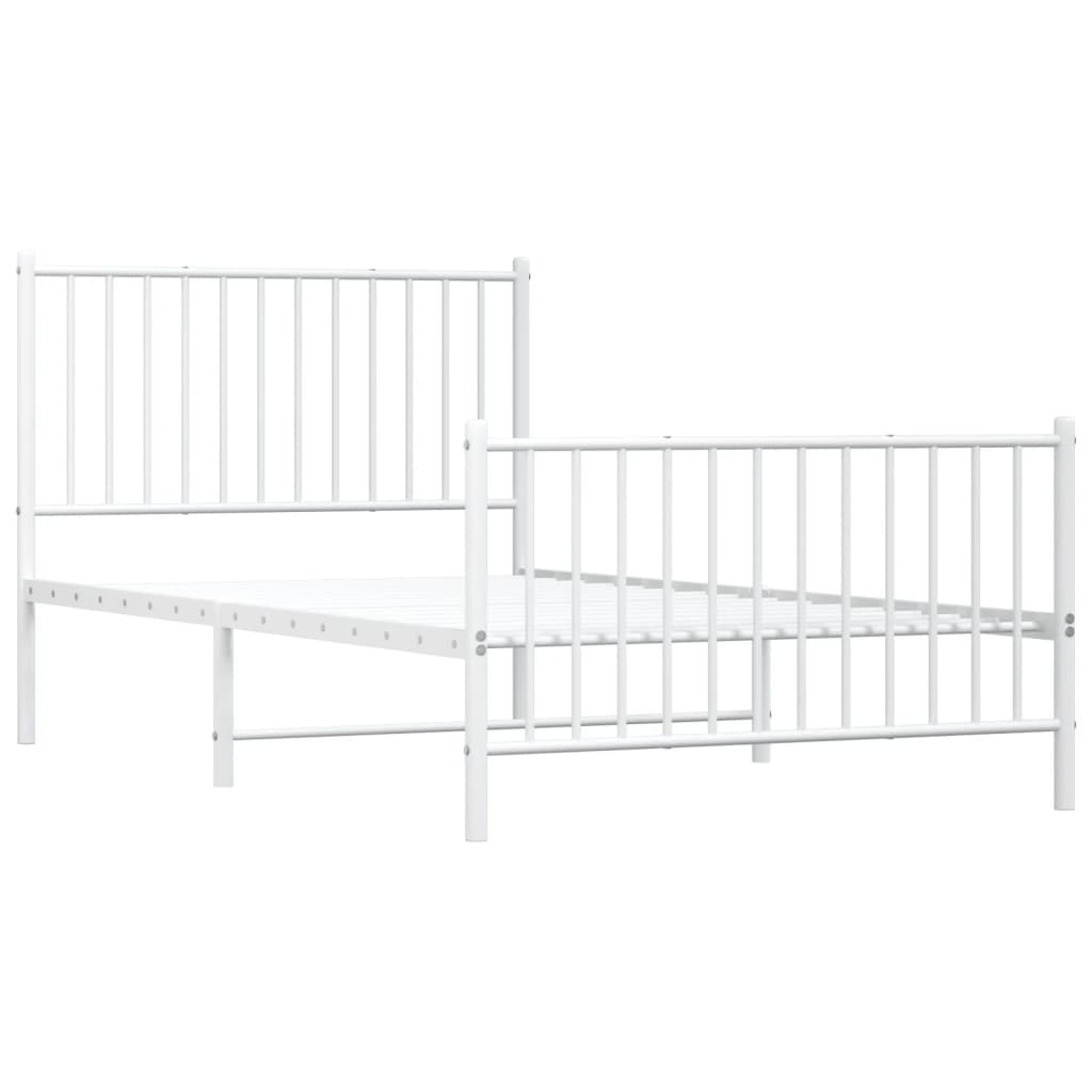 Metal Bed Frame with Headboard and Footboard White 100x190 cm – Modernique