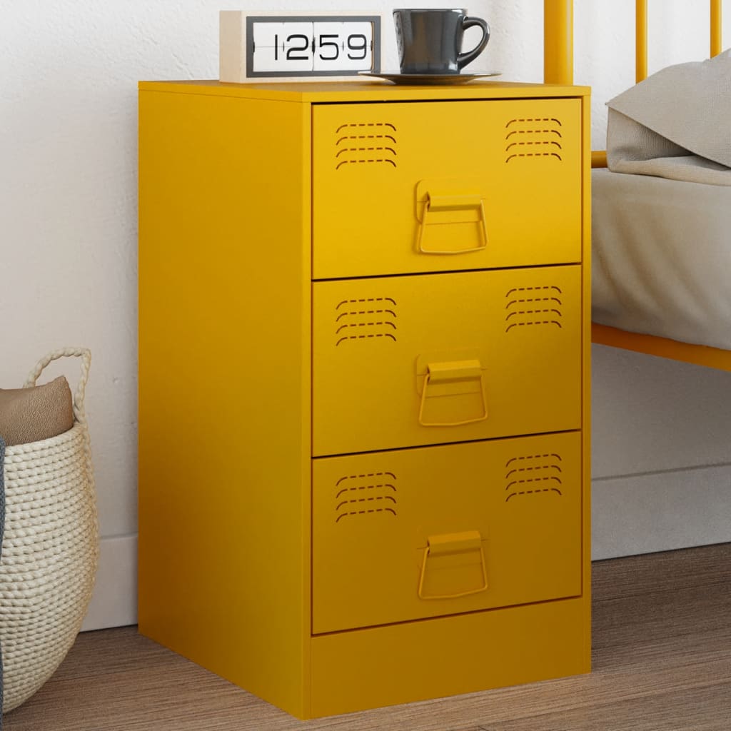 This bedside cabinet with a stylish design makes a timeless addition to your interior decor. Stable material: The bedside cabinet's frame is made of cold-rolled steel. Cold-rolled steel is a kind of low-carbon steel produced by a "cold rolling" method and processed at near normal room temperatures. Cold-rolled steel has a smoother surface, greater strength, and higher precision.Ample storage space: This cabinet offers handy storage space for keeping your magazines, books, remote controls and other small items well-organised and within reach.Easy to maintain: The table is easy to clean with a damp cloth and requires less maintenance.Practical handle: The bed cabinet comes with 3 handles that make it easy to open and close the cabinet while also adding to extra beauty. Warning:To prevent it from tipping over, this product must be used with the wall attachment device (not provided).