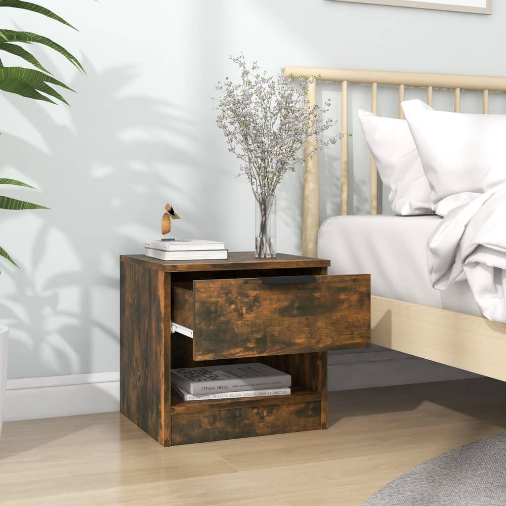 This bedside cabinet with an elegant design makes a timeless addition to your interior decor. Premium material: The engineered wood is of exceptional quality with smooth surface and also features strength, stability and resistance to moisture. Made of engineered wood, the nightstand is easy to clean with a damp cloth.Ample storage space: Equipped with 1 drawer and 1 compartment, the bedside table offers handy storage space for keeping your magazines, remote controls and other small items well organised and within reach.Sturdy top: The bed cabinet features sturdy top that can be used to place table lamp, books, etc.
