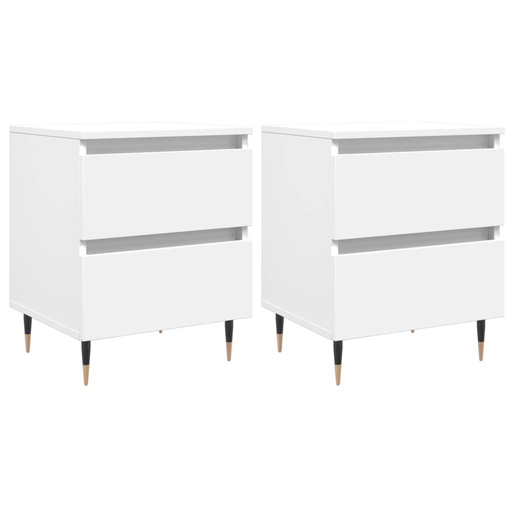 These bedside cabinets with an elegant design make a timeless addition to your interior decor. Durable material: The engineered wood is of exceptional quality with smooth surface and also features strength, stability and resistance to moisture. Made of engineered wood, the bedside table is easy to clean with a damp cloth.Ample storage space: Equipped with 2 drawers, the bed side table offers handy storage space for keeping your magazines, books, remote controls and other small items well organised and within reach.Stable top: The stable top of the nightstand can be used to place decorative items like photo frames and potted plants. Warning:To prevent it being overturned, this product must be used with the provided wall attachment device.