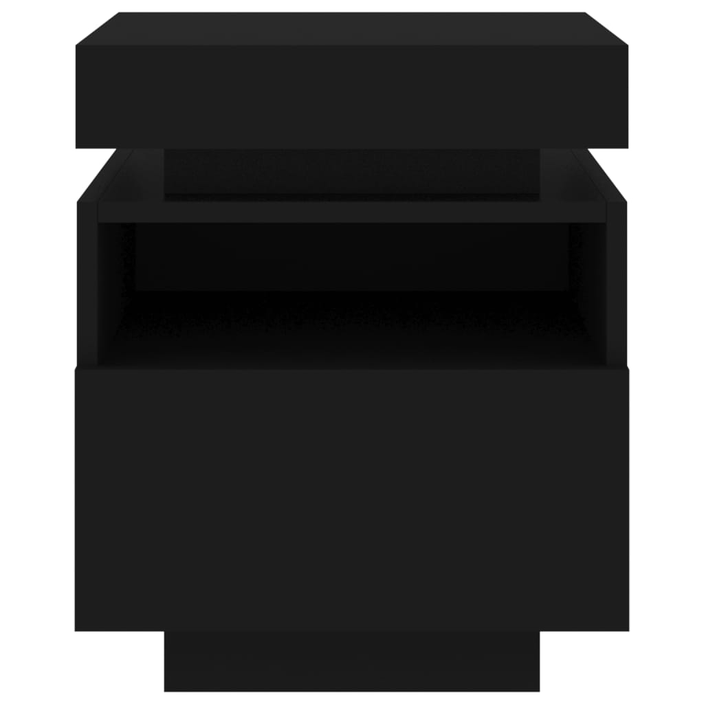 Featuring a trendy yet practical design, these bedside cabinets with LED lights will definitely become a focal point of your room. Durable material: The engineered wood is of exceptional quality with smooth surface and also features strength, stability and resistance to moisture.RGB LED lights: These bed side cabinets feature RGB LED lights, which have different menus to change the colour of lights and let the colour adjust automatically.Ample storage space: These bedside tables offer handy storage space for keeping your magazines, remote controls and your small items well organised and within reach.Displaying function: The sturdy tops of these media cabinets are ideal for displaying decorative objects, photo frames, or potted plants. Good to know:The product has a USB connector, but the certified 5V USB power source is not included.
