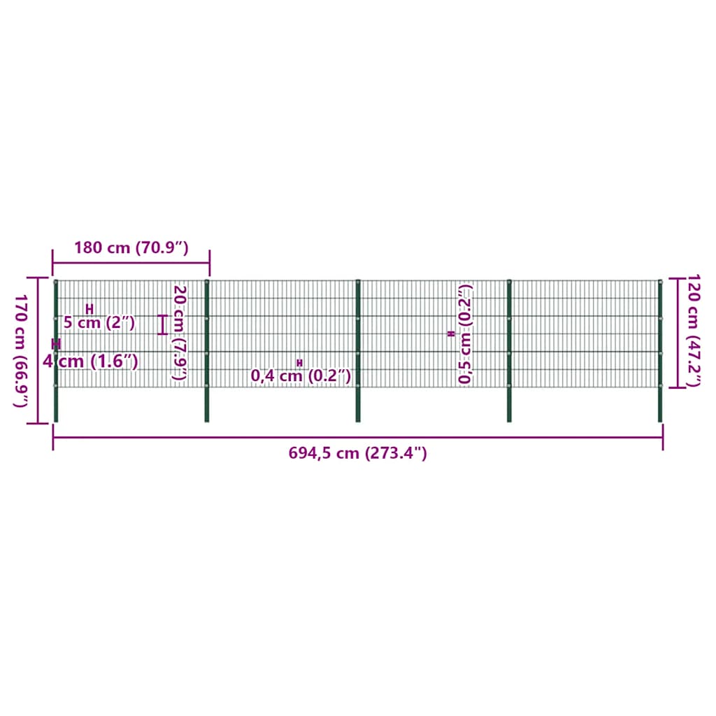 Featuring a simple yet practical design, this set of garden fence panels with posts will perfectly suit any garden. Made of weather-proof and corrosion-resistant powder-coated iron, this set of screen fencing is exceedingly sturdy and durable. The fencing set is easy to set up and will form a formidable barrier to keep unwanted guests away from your garden or patio. Delivery includes 12 x 2 D fence panels and 5 posts.