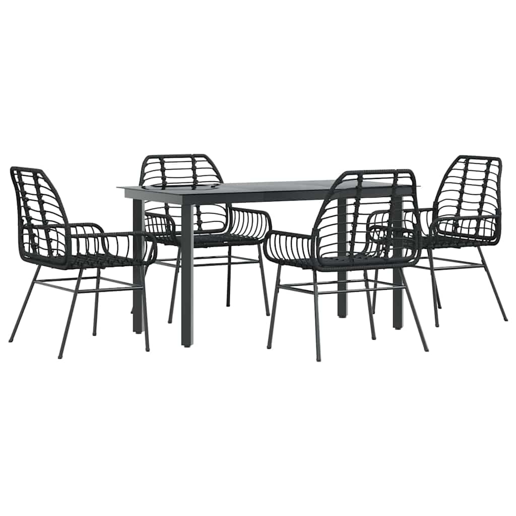 This garden dining set is a great choice for al fresco dining or just relaxing in the garden, backyard, or on the patio. Durable material: PE rattan, also known as poly rattan, is a strong, low-maintenance synthetic material that looks like natural rattan. It's lightweight, easy to clean, and commonly used for outdoor furniture due to its durability and weather-resistant properties.Robust and stable frame: The powder-coated steel frame is strong, stable, durable, and resistant to corrosion and harsh weather, ensuring long-lasting performance.Practical backrest and armrest: This garden chair features a backrest and two armrests that offer optimal support and comfort for users.Glass tabletop: The outdoor table's top is made from strong and durable tempered glass, making it easy to clean with a damp cloth and adding a touch of elegance to your outdoor space. Good to know:To make sure your outdoor furniture stays beautiful, we recommend protecting it with a waterproof cover.