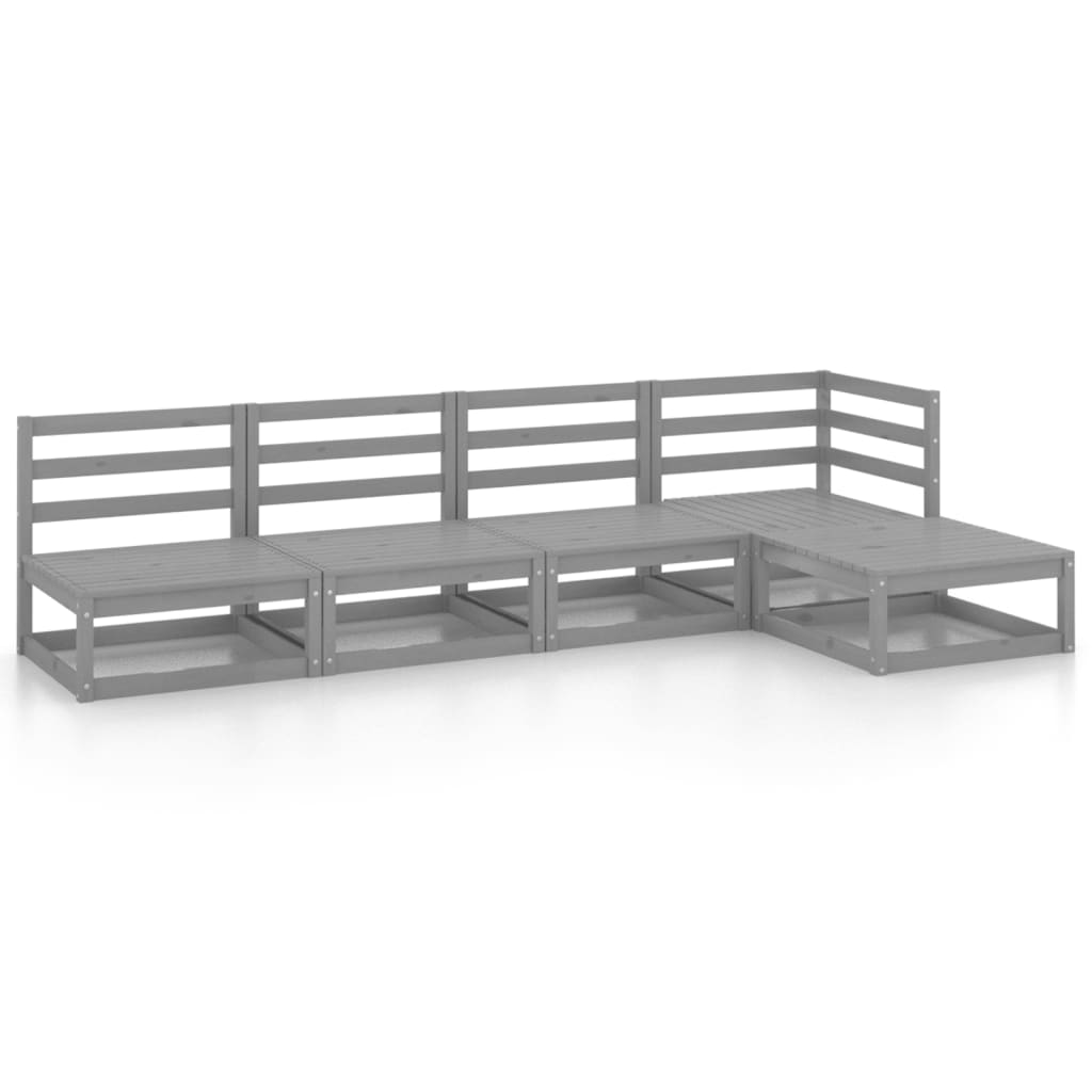 5 Piece Garden Lounge Set Grey Solid Wood Pine – Modernique