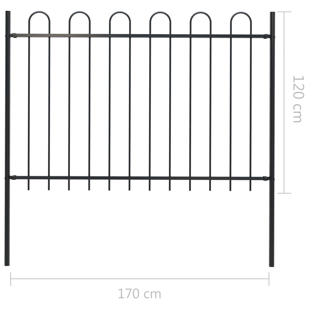 Garden Fence with Hoop Top Steel 1.7 m Black – Modernique