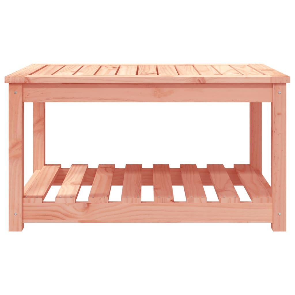 Enjoy a nice meal with your family and friends around this wooden garden table! It will bring a touch of rustic charm to your patio, garden, or terrace. Solid douglas wood: Solid douglas wood is a highly durable wood that is perfect for outdoor. Douglas wood is also strong and needs less maintenance even under the influence of the weather.Stable tabletop: The tabletop offers excellent support for holding your drinks, snacks, fruit baskets, and your favourite decorations.Extra storage space: The patio table is designed with an open shelf that provides extra storage space for keeping your various daily essentials well-organised and within easy reach.Sturdy frame: The wooden frame ensures the sturdiness and stability of the lounge table.Wide applications: The garden lounge table, with its remarkable design, creates a pleasant overall appearance that integrates effortlessly into any environment. Good to know:To make assembly as easy as possible, each product is delivered with a manual.Note:To make sure your outdoor furniture stays beautiful, we recommend protecting it with a waterproof cover.