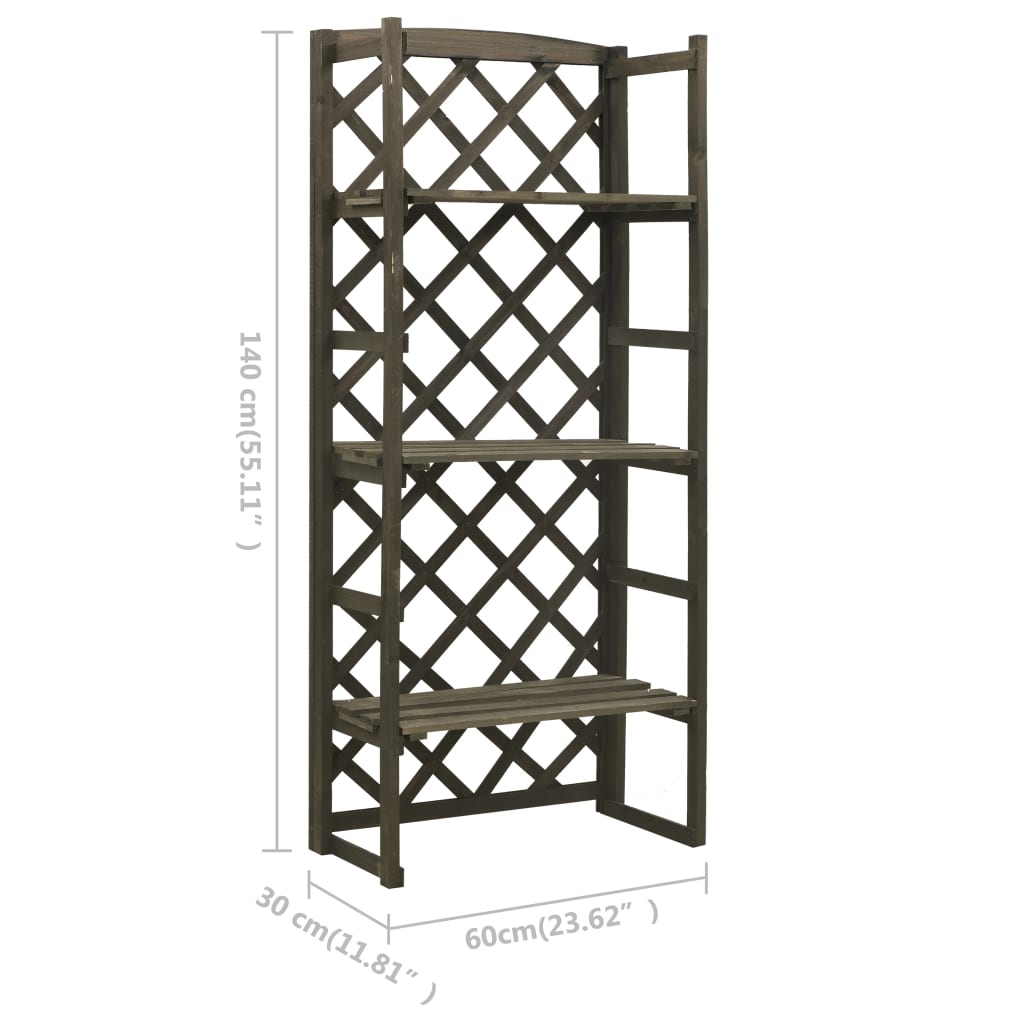 This solid wooden plant stand with trellis is a perfect way to display a rich mixture of plants and flowers. It is especially suitable for climbers with trellis. It makes a practical as well as a decorative addition to your garden, balcony, patio, etc. This flower stand, made of solid firwood, is sturdy and suitable for outdoor use. The garden plant stand has three shelves that create ample storage or display room for potted plants and garden ornaments. Additionally, the trellis offers excellent support for climbing plants.