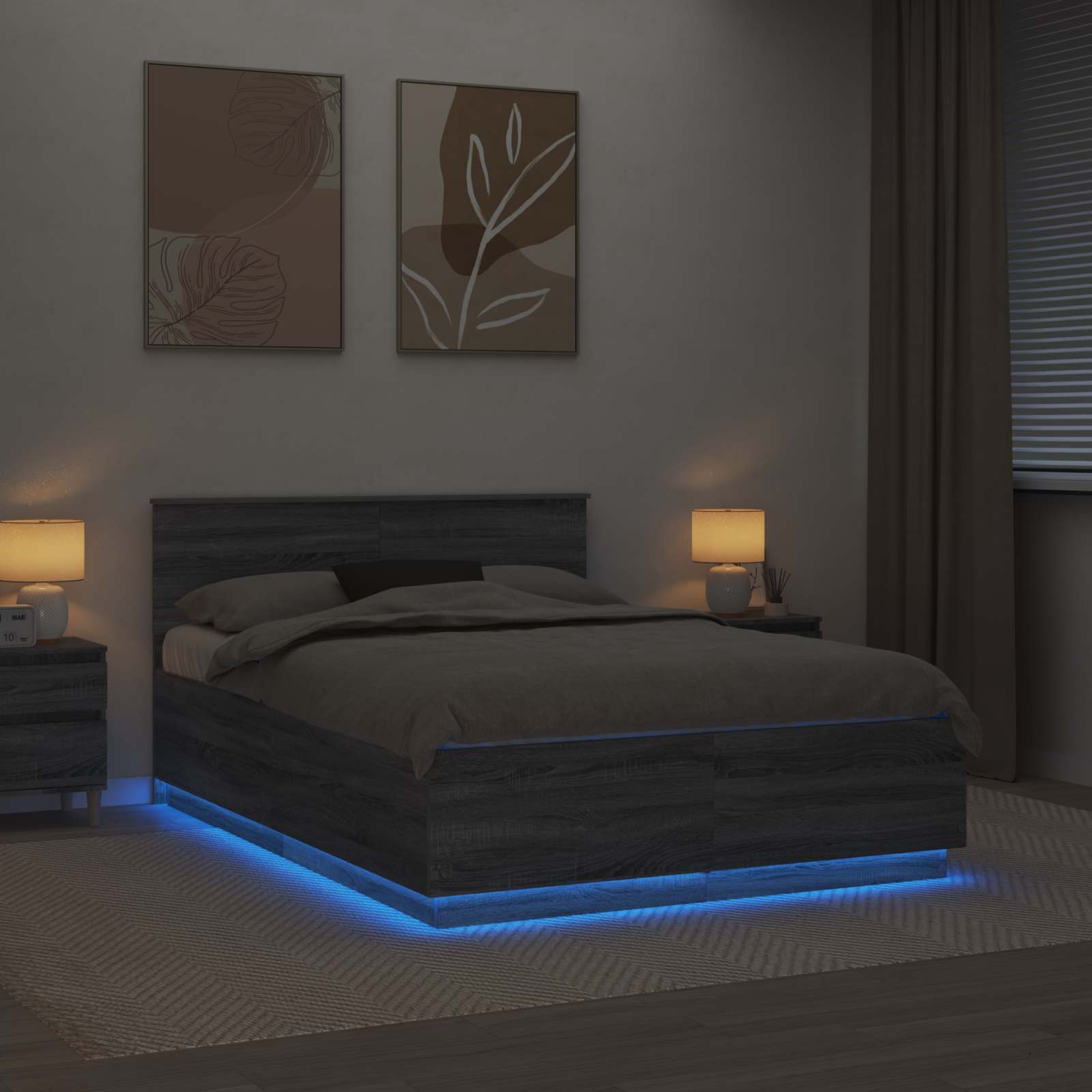 This modern bed frame will transform your bedroom with its sleek and contemporary design. Its frame, precision-crafted from engineered wood, offers a clean, minimalist look perfectly suited for any modern setting. Designed to enhance your sleeping experience, the bed features an adjustable headboard and calming LED strip lights for a beautifully illuminated backdrop –setting a delightful mood for relaxation. Materials: The bed frame is constructed from high-quality engineered wood, known for its strength and resistance to warping. This material choice ensures a consistent appearance and integrity, enhancing the modern aesthetic of your bedroom while providing stability and durability. Included Components: The bed comes complete with an adjustable, wall-mounted headboard that provides customizable support and an integrated storage solution. LED strip lights enhance the frame, offering ambient lighting options, while a handy USB plug allows for device charging right from the comfort of your bed. Features /Function /Design: An adjustable headboard provides personalized comfort, supporting various sitting positions for reading or relaxing. The USB port supports convenient gadget charging without messy cables, while multicolor LED lights add a touch of elegance and personalization to your space. Recommended Uses: Perfect for modern, minimalist bedroom settings, this bed frame's stylish appearance can transform any bedroom into a contemporary haven. Its adaptability makes it suitable for tech-savvy users who appreciate integrated electronics and a versatile sleeping environment. Care &Maintenance: To maintain the bed’s pristine look, simply wipe down with a damp cloth. This straightforward care requirement ensures the bed remains a visually appealing centerpiece while extending its lifespan.