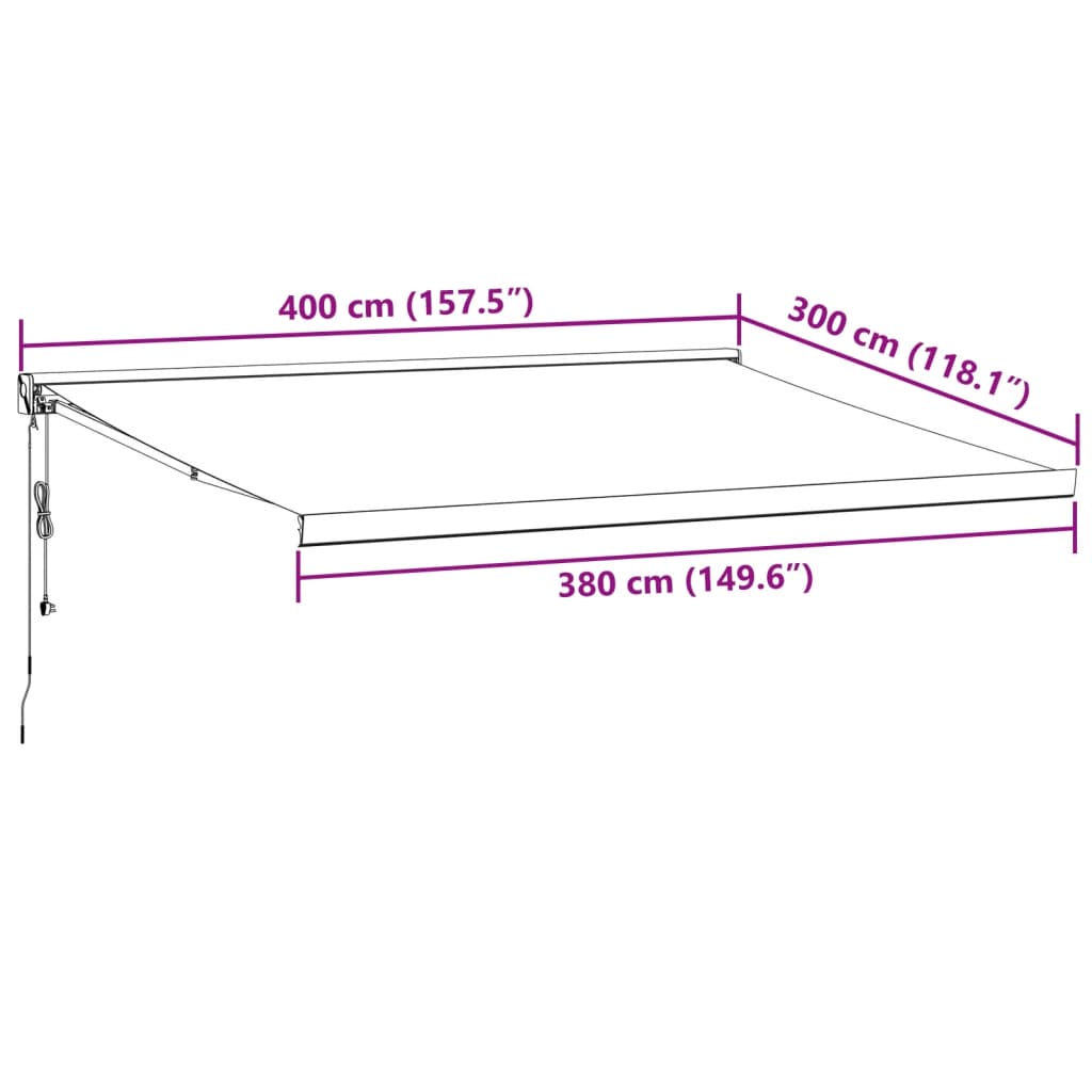 Create a nice and cool place on your patio and protect yourself from the UV rays with this retractable awning! Durable material: The awning frame is made of powder-coated aluminium, which is robust and durable. The fabric with PU surface treatment is UV resistant. It will prevent your family or guests from UV rays and dazzling sunlight.Automatic function: You can easily open and retract the awning via the included remote control.Easy to operate: The angle and height can be adjusted to meet your different needs. You can open and retract the awning smoothly via the long-hand crank.Wide applications: The retractable awning features a simple, stylish design that will blend well with your home or commercial settings. It is suitable for a variety of places, such as balconies, patios, yards, restaurants, cafes, shops, and more.