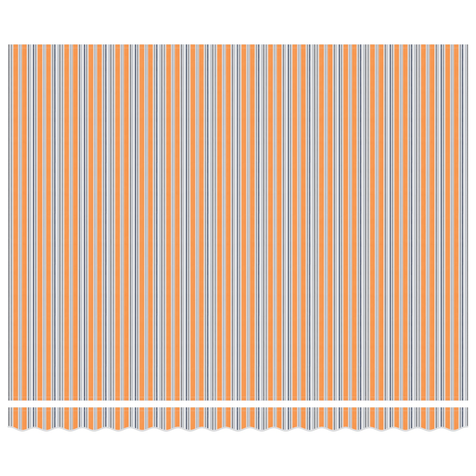 This retractable awning strikes a great balance between function, style, and durability. It's perfect for enhancing outdoor spots like balconies or patios. The lively orange and white stripes add a modern twist, providing comfort and shade on sunny days. Stylish Design: The eye-catching striped pattern enhances your outdoor space, combining aesthetics and function. This attractive awning not only looks good but also provides essential shade from the sun. Adjustable Features: With collapsible arms, the awning can be easily retracted or extended as needed, allowing you to control sunlight exposure and adapt to various weather conditions. Durable Materials: Made from high-quality UV-resistant polyester, this awning is built to last, resisting fading and deterioration, ensuring vibrant shade for years. Effortless Installation: It includes installation hardware and a straightforward manual, needing just two people and basic tools like a drill, screwdriver, and measuring tape. Protection from Elements: Besides providing shade, it offers light rain protection and UV shield, letting you enjoy the outdoors even when the weather's a bit dodgy.