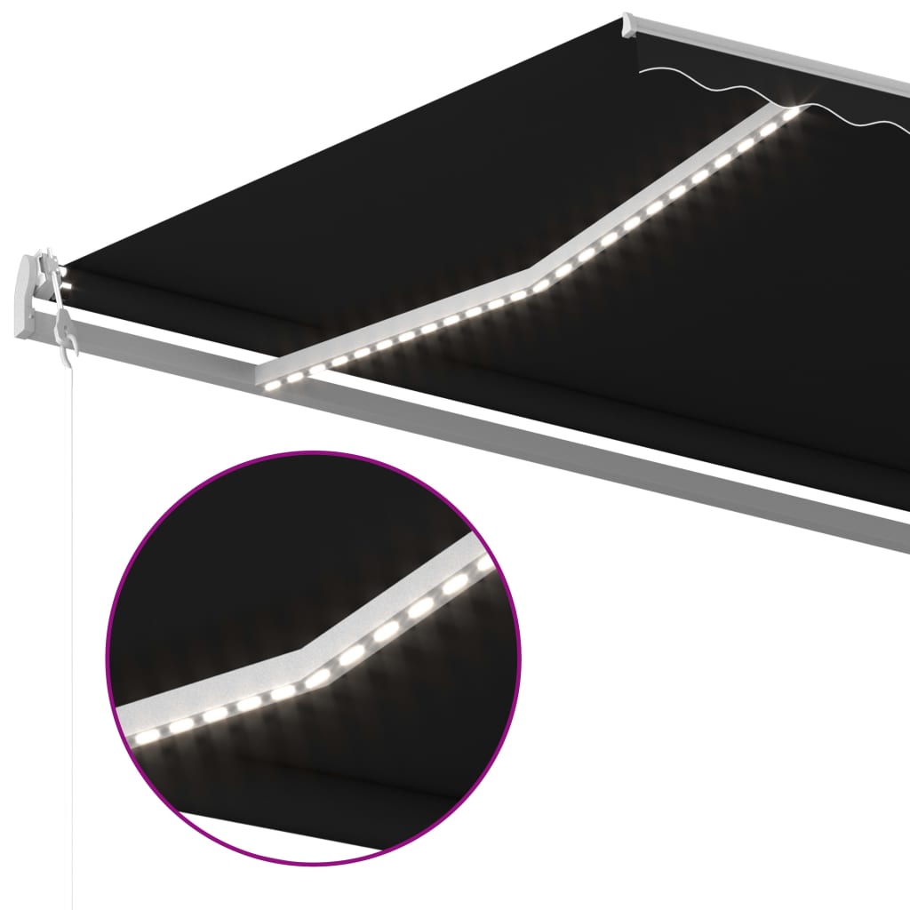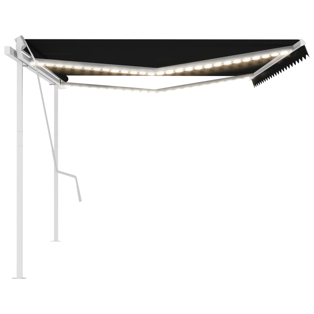 Create a lovely and cool place in your outdoor spaces with this retractable awning! This outdoor awning is built with a rust-resistant powder-coated aluminium frame, making it lightweight yet sturdy. The strong iron post makes it stable. The patio awning's fabric is made of high-density polyester with PU coating, which is UV and water-resistant. Additionally, the angle and height can be adjusted to meet your specific needs. You can open and retract the awning smoothly with the long hand crank. What's more, the solar-powered LED lights provide energy-saving lighting at night.