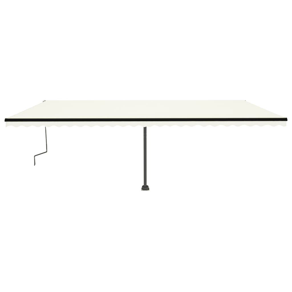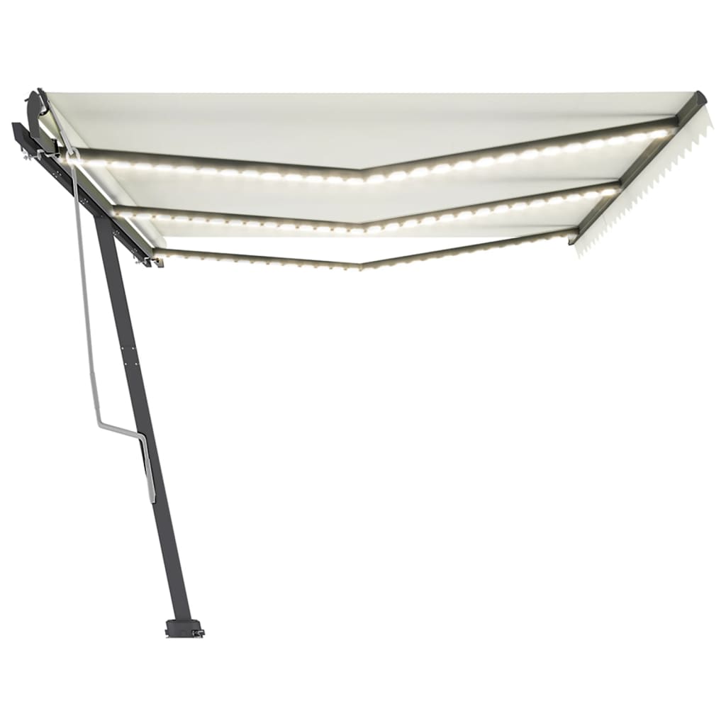 Create a lovely and cool place in your outdoor spaces with this retractable awning! This outdoor awning is built with a rust-resistant powder-coated aluminium frame, making it lightweight yet sturdy. The patio awning's fabric is made of high-density polyester with PU coating, which is UV and water-resistant. Additionally, the angle and height can be adjusted to meet your specific needs. You can open and retract the freestanding awning smoothly with the long hand crank. What's more, the solar-powered LED lights provide energy-saving lighting at night. The sturdy base can be rotated 360 degrees, providing maximum adjustment needs.