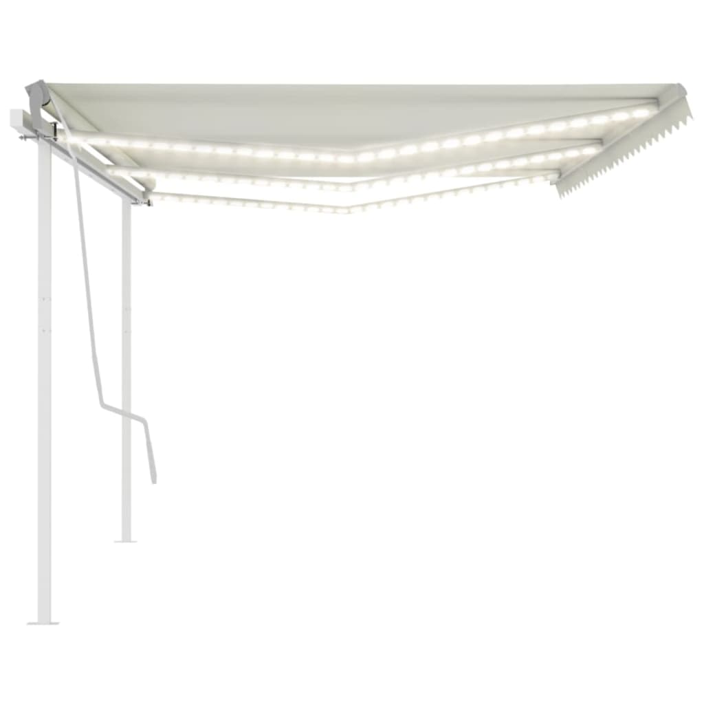 Create a lovely and cool place in your outdoor spaces with this retractable awning! This outdoor awning is built with a rust-resistant powder-coated aluminium frame, making it lightweight yet sturdy. The strong iron post makes it stable. The patio awning's fabric is made of high-density polyester with PU coating, which is UV and water-resistant. Additionally, the angle and height can be adjusted to meet your specific needs. You can open and retract the awning smoothly with the long hand crank. What's more, the solar-powered LED lights provide energy-saving lighting at night.