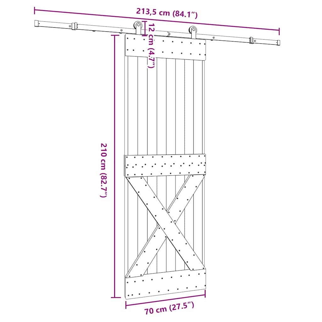 This solid pine wood sliding door is designed to enrich the entrance area of your house and also ensure better security for your home. Solid pine wood: The interior door is made of solid pine wood. Solid pine wood is a beautiful natural material. Pine wood has a straight grain, and the knots give the material its signature, rustic look.Sturdy sliding rails: Steel is an exceptionally hard and strong material. It offers sturdiness and stability. The powder coating on steel creates a protective layer against wear and tear. Made of powder-coated steel, the sliding rails are sturdy, durable and heavy-duty.Quiet and smooth sliding: Thanks to the internal bearings, your internal sliding door will slide smoothly and quietly. Doorstops are also included to prevent the derailing of the rollers, while the rubber gaskets will buffer the bump from rollers and reduce the noise.Space-saving design: This wooden sliding door saves space and looks more spacious. It is the first choice for a simple and atmospheric modern home design.Wide applications: The sliding barn door can be installed on both wooden walls and concrete walls. It's great for use in the bedroom, kitchen, barn, garage, etc.