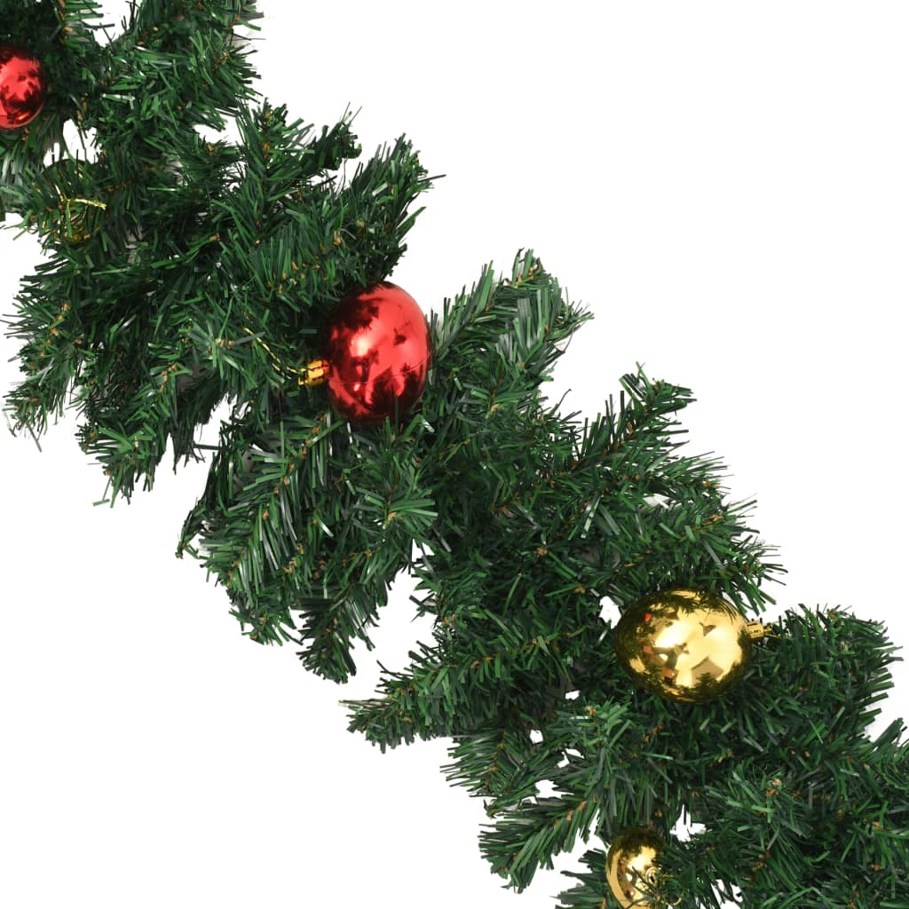 This lusciously thick Christmas garland with baubles is an ideal decoration for your banister, ceiling, fireplace, or windows and will create the perfect atmosphere for this coming Christmas. It will look spectacular wherever you hang it. Made of PVC, this lovely Christmas decoration is weather resistant, making it suitable for both indoor and outdoor use. While not in use, it can be easily stored for next holiday's use. Create the perfect holiday ambience with our lovely Christmas garland!
