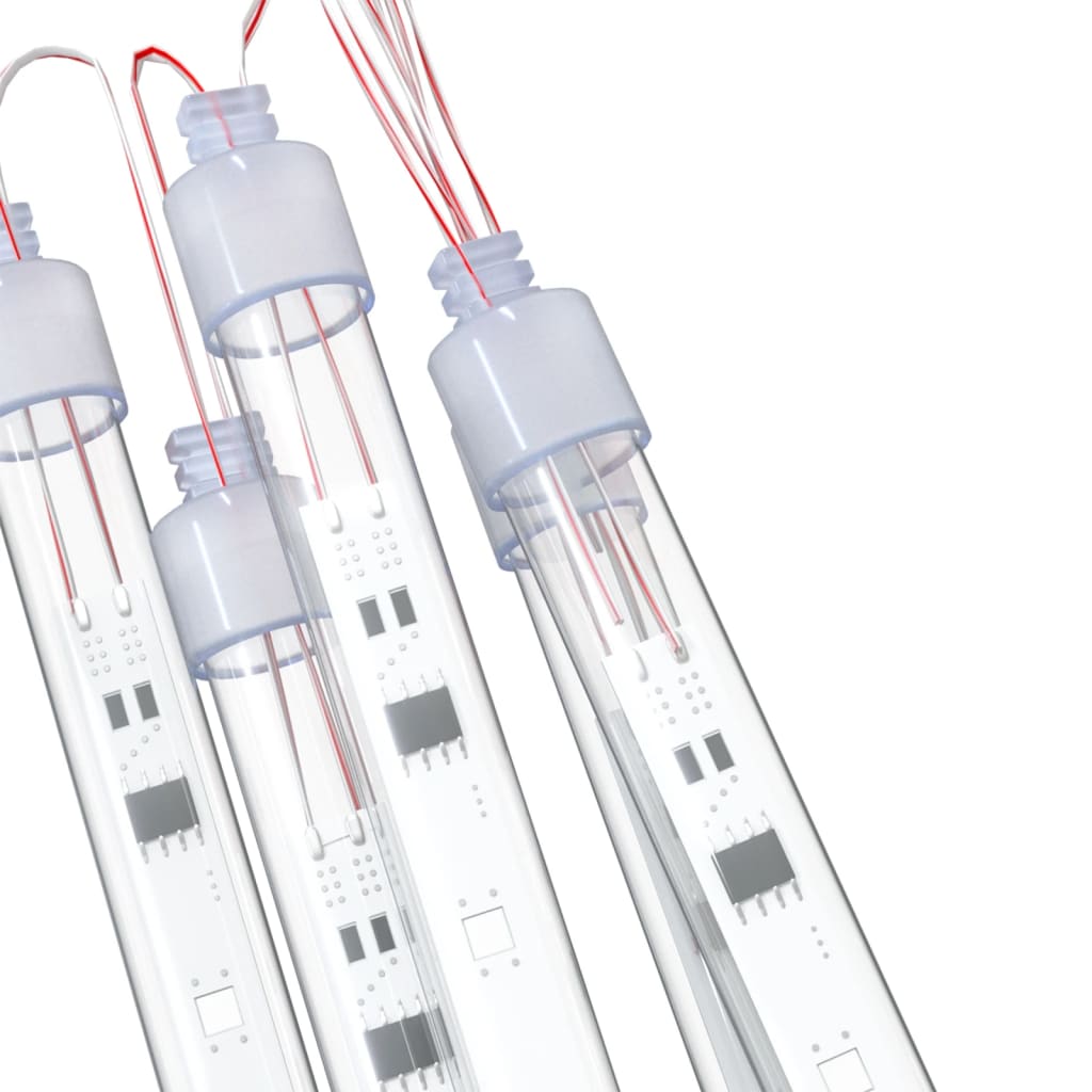 These meteor lights are perfect for indoor and outdoor parties, Christmas, weddings and any other event where you want to add some sparkle. It is also an excellent decoration of trees along streets. The meteor rain lights are made of durable plastic material, which is water-resistant and durable. Each light tube has 24 energy-saving and low-consumption SMD LEDs, providing omnidirectional illumination. The twinkling lights of every tube turn on and out one by one in sequence and quickly, just like a meteor shower or falling snow in the night sky. Note: The included USB is not water-resistant. Do not expose this part to moisture or water. However, thanks to the 2 m cable, the item can be used outdoors as the cable and product are water-resistant.