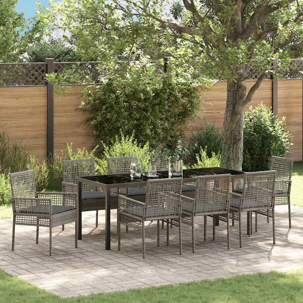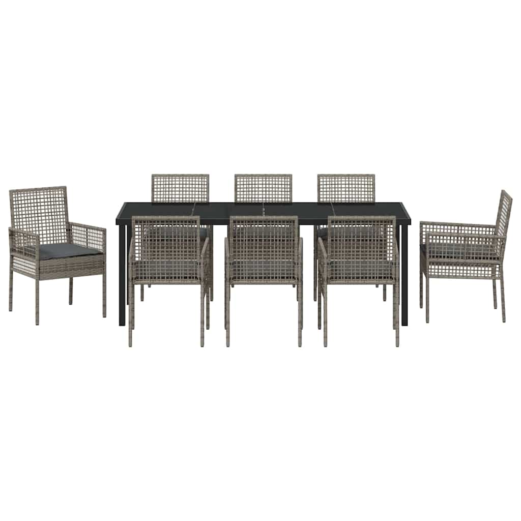 This garden dining set captures the chill vibes and beauty of outdoor living. It's crafted just right for your garden and terrace, with a sleek modern style that blends in nicely with the outdoors. Whether you’re throwing an evening get-together or just enjoying some quiet time with a good book, this set promises both comfort and flair. Each piece is carefully made, boosting the overall feel of your outdoor space and giving you the perfect spot to relax. Resilient Poly Rattan: Enjoy outdoor style with a poly rattan finish that can handle sun and rain. It keeps its shape and colour, giving you bright and cheerful outdoor fun for ages. The woven design adds comfort and looks great, making it a classic addition to any outdoor area. Inclusive Furniture Set: Comes as a complete dining set with a tough glass top, comfy poly rattan cushions, and solid legs. Every bit is useful, combining comfort and functionality for seamless outdoor fun. The set makes al fresco dining a real treat, perfect for meals with family or friends. Functional Characteristics: Built to last and easy to move, this set keeps practicality in mind for outdoor use. It’s lightweight, making it easy to switch up the seating layout. Every change makes the space feel new, perfect for both intimate and larger gatherings. Versatile Application: Fits in any setting, from lively terraces to cosy garden spots. This set blends in perfectly, striking a balance between style and function. It’s great for relaxing day-to-day or for lively get-togethers. Maintenance-Friendly Design: Designed for easy care, this set needs little upkeep. Just remember to cover it when not in use and give the cushions a quick clean now and then. Simple care tips keep it looking good and in use all year round.