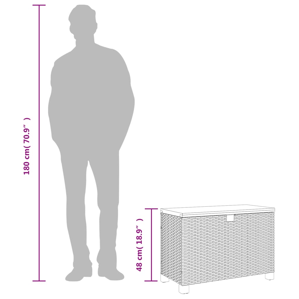 This garden storage box is ideal for storing your cushions, pillows, blankets, and other items in the garden or on the patio. Durable material: PE rattan, also known as poly rattan, is a strong, low-maintenance synthetic material that looks like natural rattan. It's lightweight, easy to clean, and commonly used for outdoor furniture due to its durability and weather-resistant properties.Storage function with water-resistant bag: The garden furniture features storage space under the seat, complete with a water-resistant bag for storing cushions, and other items. The inner bag can be securely fastened to the outdoor furniture with hook-and-loop fasteners for added stability.Versatile functionality: This outdoor furniture serves a dual purpose as a garden storage box and a bench seat.Safe and easy to open and close: The gas spring makes it easy to open the lid and keep it from slamming shut or trapping fingers.Stable and easy-to-clean tabletop: This patio furniture has an acacia wood top that is sturdy, durable, and easy to clean with a damp cloth. Good to know:To make sure your outdoor furniture stays beautiful, we recommend protecting it with a waterproof cover.