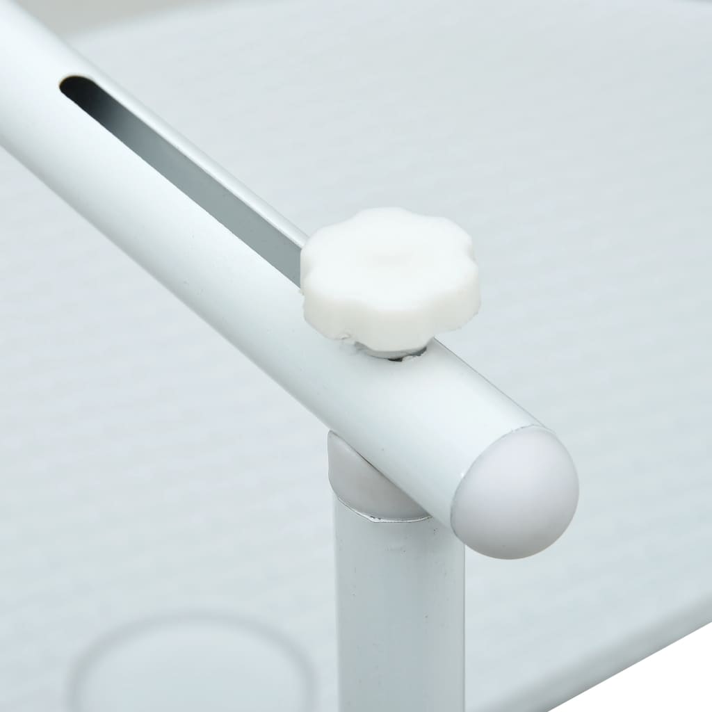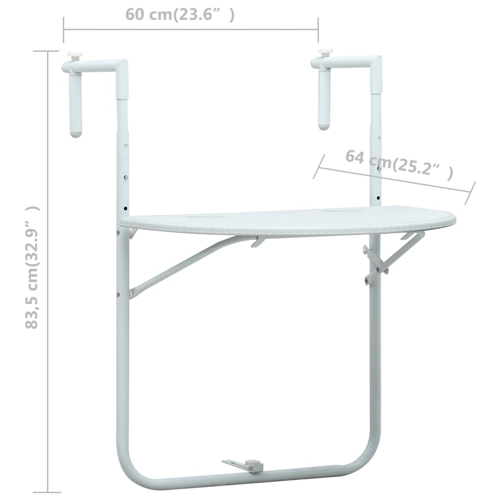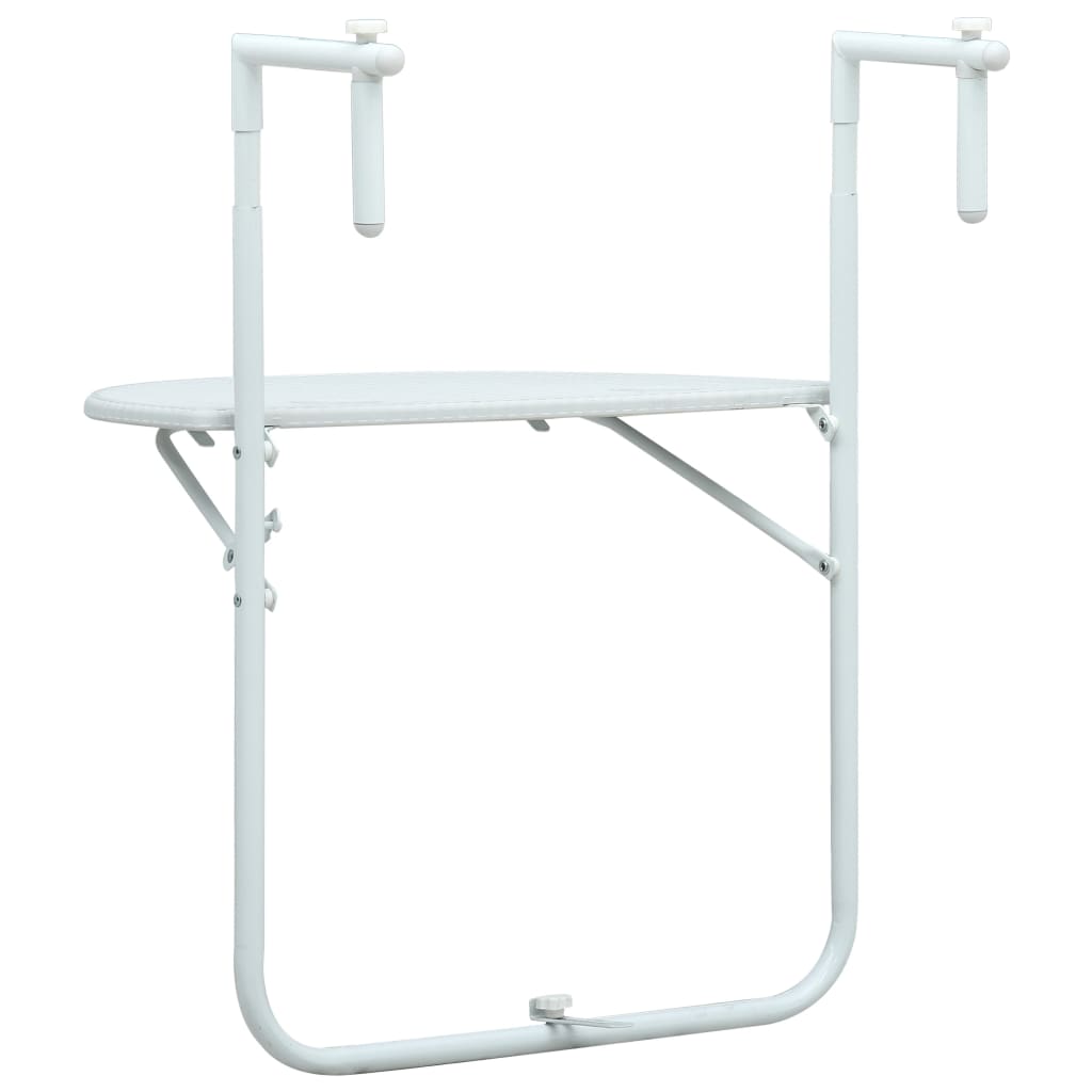 This hanging balcony table will make a great addition to your balcony, serving as a coffee table to place your drink or a convenient worktop to keep items such as garden tools and potted plants. Made of durable plastic, the tabletop is weather resistant and easy to clean. Its rattan look design adds a touch of natural charm to your balcony. With a sturdy steel frame, the table is highly stable. Additionally, the height can be adjusted in 3 levels to satisfy your requirements. The table can be easily folded to save space when not in use.