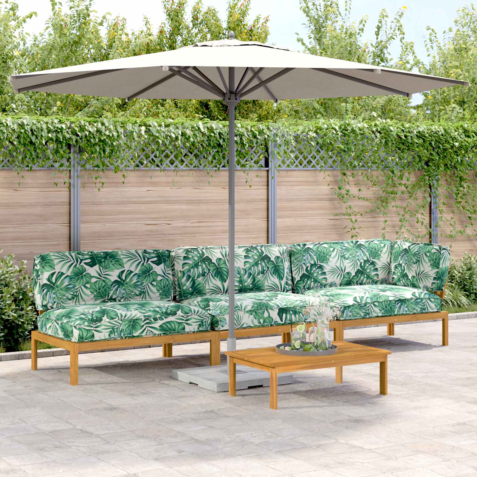 This Wooden Lounge Sofa Set transforms your outdoor area into a luxurious haven. Crafted for style and functionality, it seamlessly fits into any garden or terrace, offering a sophisticated touch to outdoor leisure. Acacia Wood Frame: The set features a Solid Acacia Wood frame, known for its robustness and beautiful grain pattern. It's an excellent choice for outdoor furniture due to its natural resistance to moisture and elements, ensuring longevity and minimal maintenance. This makes it both a practical and visually appealing choice for any garden setting, acting as a sturdy support for everyday use. Oiled Finish: The application of oil enhances the natural color of the Acacia Wood while providing additional moisture protection. This finish elevates the aesthetic and lifespan of the furniture, ensuring it maintains its appeal over time despite exposure to outdoor conditions. The rich hues of the wood create a stylish contrast against the natural backdrop of your garden or terrace. Modular Configuration: Designed with modern needs in mind, this sofa set allows flexibility with its modular components. You can reconfigure its layout to suit different spaces or occasions, whether you're setting up for a lively gathering or a peaceful retreat. This adaptability means your outdoor furniture can evolve with your needs, providing an endless array of possible setups. Weather-Resistant Cushion: The weather-proof Oxford cushions are crafted for outdoor durability and comfort. These cushions retain their vibrant color and structural integrity even after prolonged exposure to the sun and rain. Their resilience is ideal for maintaining a welcoming and comfortable seating area season after season without the hassle of constant care. Care Instructions: Maintaining your sofa set is straightforward, requiring minimal effort. Use a cover when not in use to shield it from direct sunlight. Regularly wipe with a dry cloth to remove dust and avoid harsh chemicals to preserve its natural beauty. These simple habits ensure that your set remains inviting and functional for years to come.