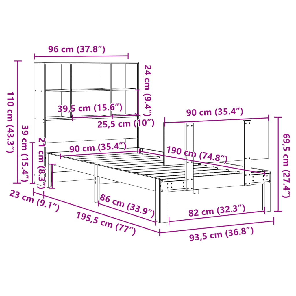 Bookcase Bed without Mattress White 90x190cm Single Solid Wood Pine – Modernique