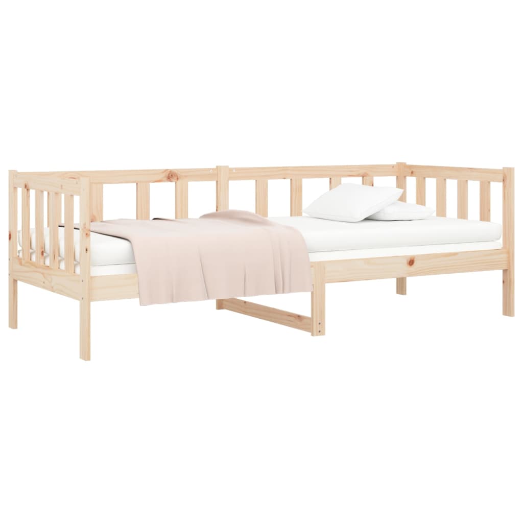 This versatile wooden day bed can be used as a bed in the bedroom and is also ideal as a sofa in the living room. It suits your different needs perfectly, providing you with plenty of space for sleeping and resting. Solid pine wood: Solid pine wood is a beautiful natural material. Pine wood has a straight grain, and the knots give the material its signature, rustic look. The guest bed is made of solid pine wood, more stable and durable. 3-sided bed rails: This sleepover bed has bed rails on the side of the bed, providing a sense of security and also adding a touch of sophisticated style to your home. Slatted design: The slatted base allows better air circulation to keep the mattress fresher for longer, improving the weight capacity of the bed and ensuring stability. Multipurpose sofa bed: This wooden day bed can be used as a sofa during the day or as a bed at night, providing a quick solution for hosting overnight guests. Extra storage space: Make the most of the space under the bed to store various items. Perfect for storing boxes to organise your clothes, toys or quilts. Note: The delivery includes a daybed frame only. The mattress is not included. You can check our shop for the matching mattresses.Each product comes with an assembly manual in the box for easy assembly.