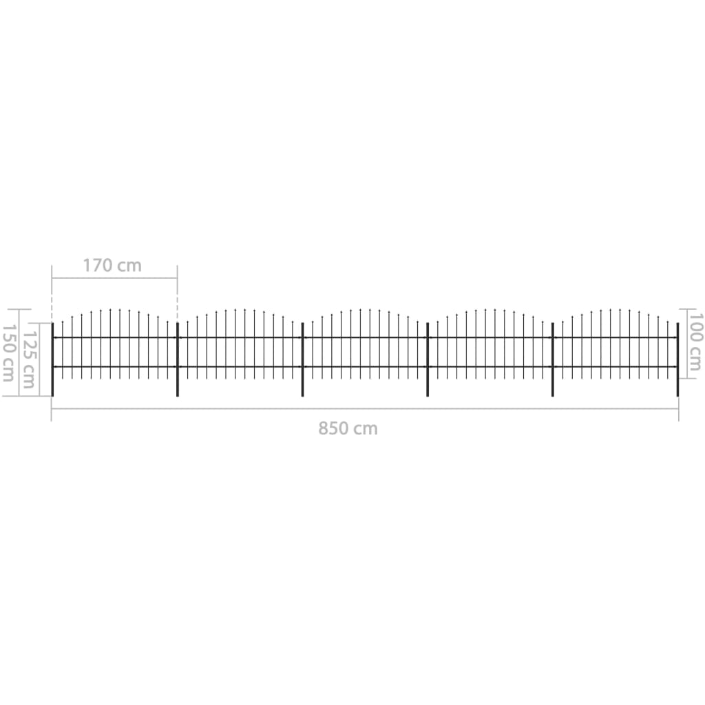 Create a safe board around your property with our premium garden fence! This high-quality steel garden fence, consisting of 5 fence panels and 6 posts, has a total length of 8.5 metres. It will form a sturdy, safe, as well as maintenance-free perimeter barrier for your garden, home, or business property. Manufactured from heavy-duty steel, the fence is exceedingly stable, sturdy and durable. Additionally, with vertical bars topped with spear ends and strong horizontal brace as reinforcement to the frame, our garden fence will provide a high degree of privacy and security. The fence panel is easy to assemble.
